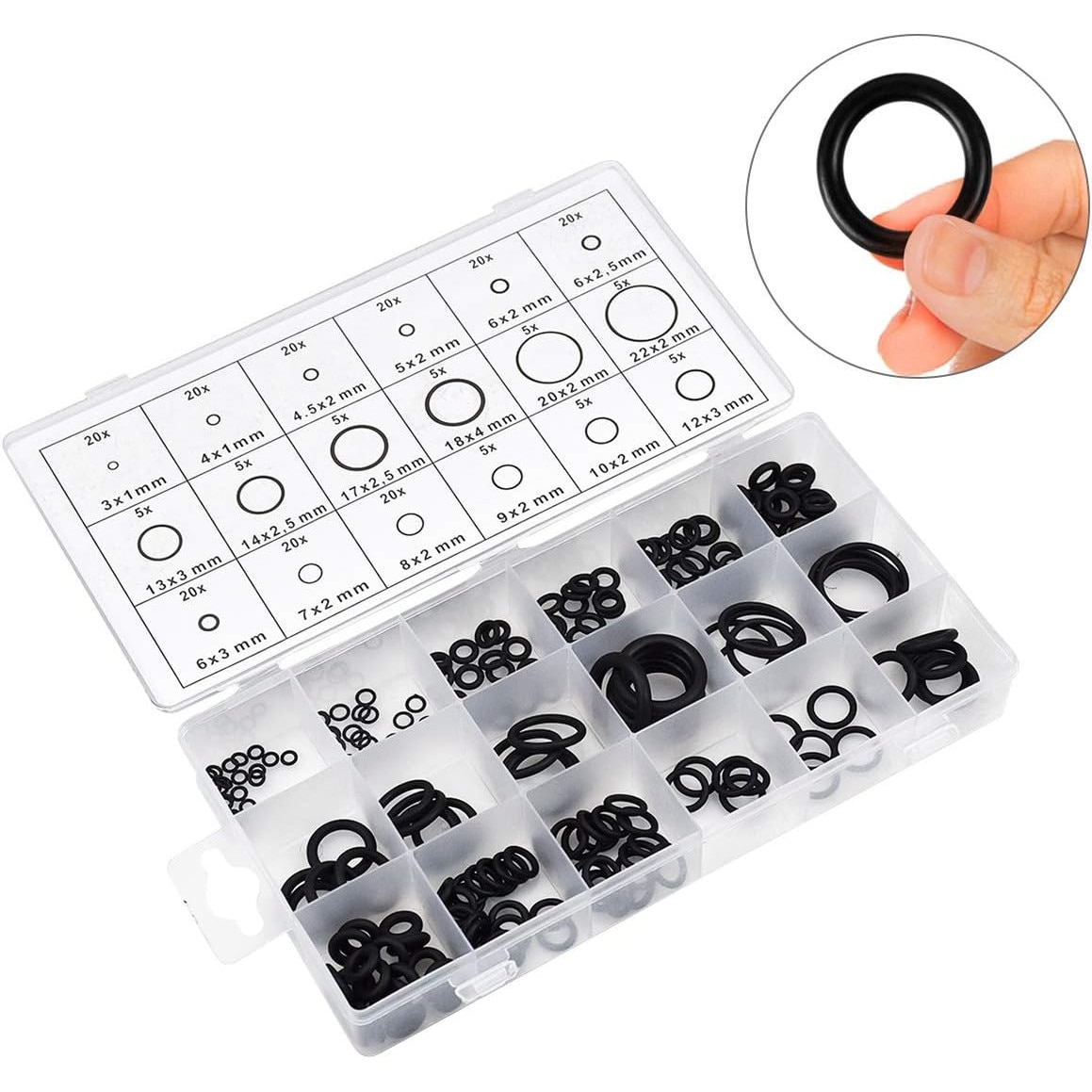 225 de bucati, 18 dimensiuni, set de asortiment de inele O-ring din cauciuc, sortiment de garnituri de inele O-ring universale de 3 mm-22 mm, robinete de aer conditionat pentru reparatii de vehicule