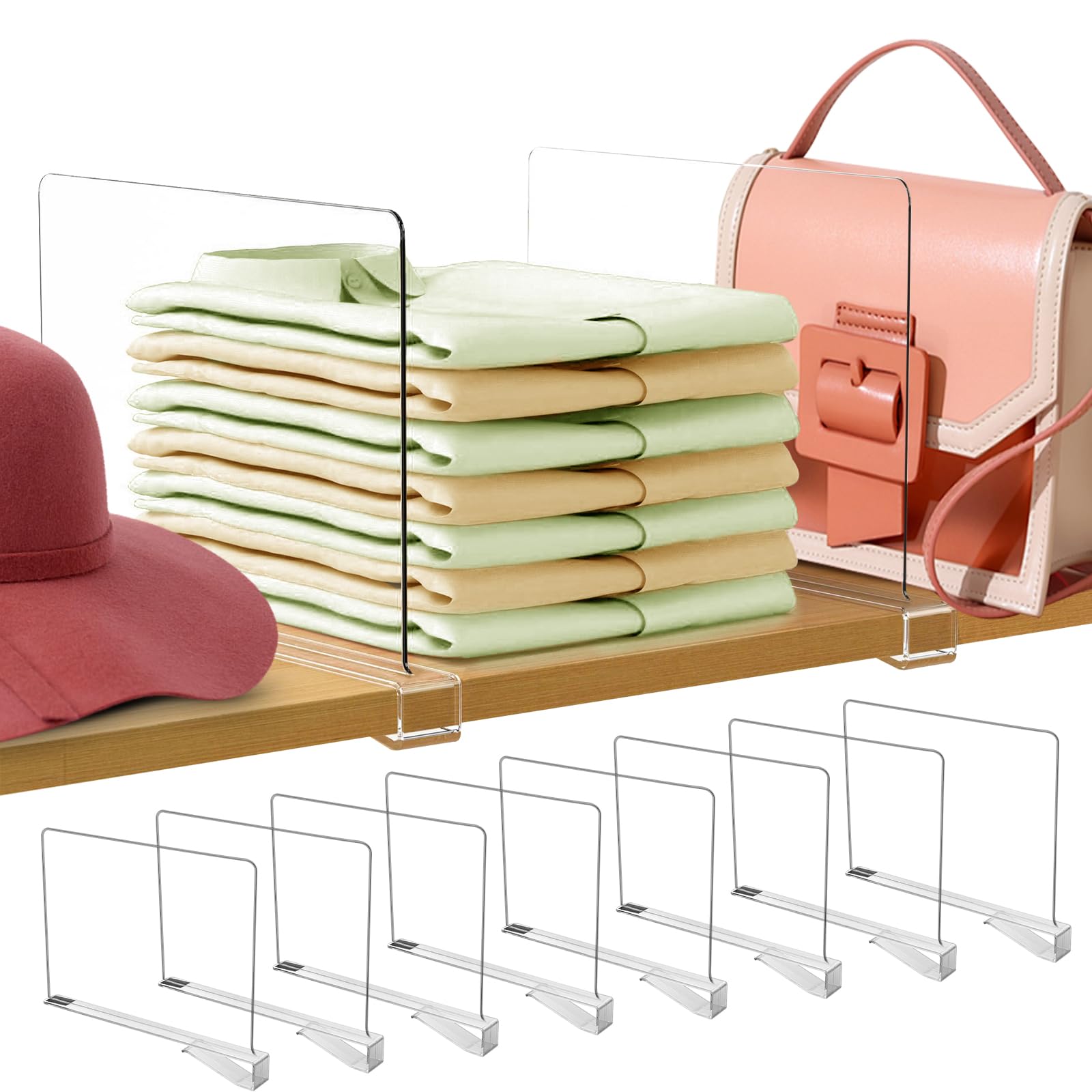 8 Separatoare De Rafturi Acrilice Transparente, Separatoare De Rafturi Multifunctionale, Separatoare De Rafturi Pentru Dulap, 30 X 20 Cm, Separatoare De Rafturi Reglabile Pentru Birou, Dormitor, Raft De Carti, Organizare Dulap