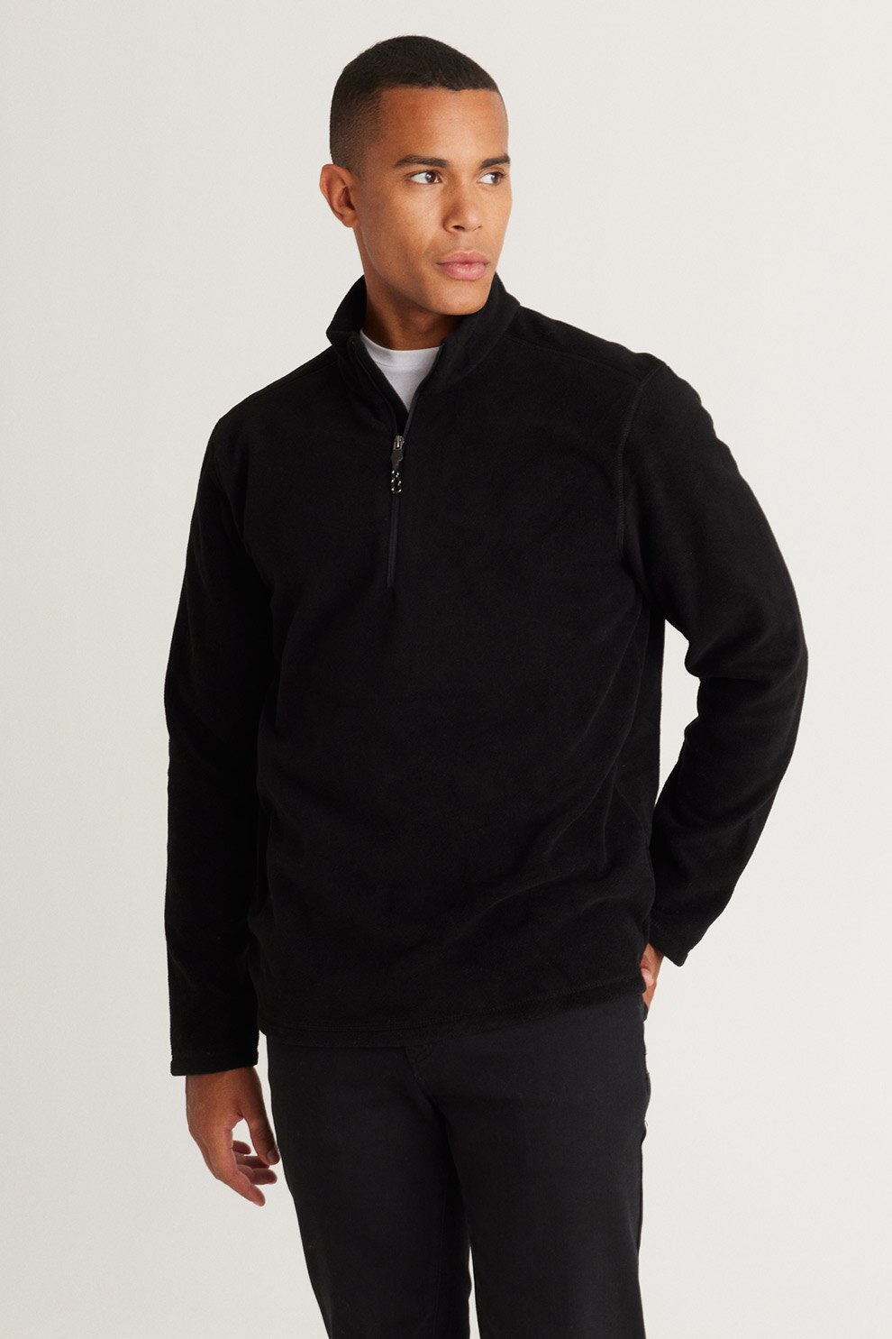 AC&Co, Bluza de trening de fleece cu fenta cu fermoar, Negru, 3XL