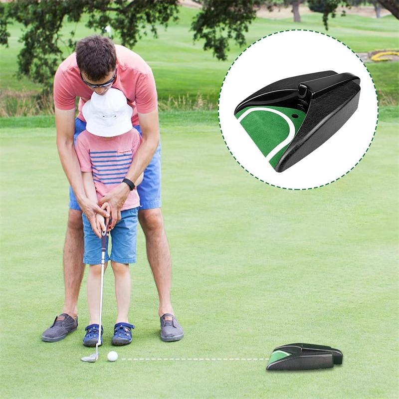 Masina automata de returnare a putter-ului de golf, BOMSTOM, Automatic Ball Launcher, Accesoriu golf, Pentru antrenamentul de golf, 27x16.5x6cm, negru/verde