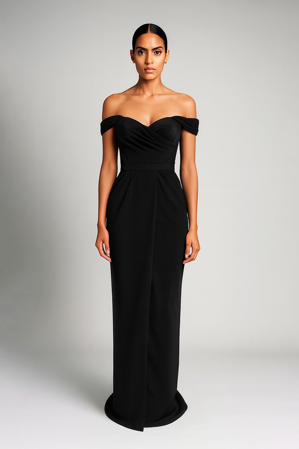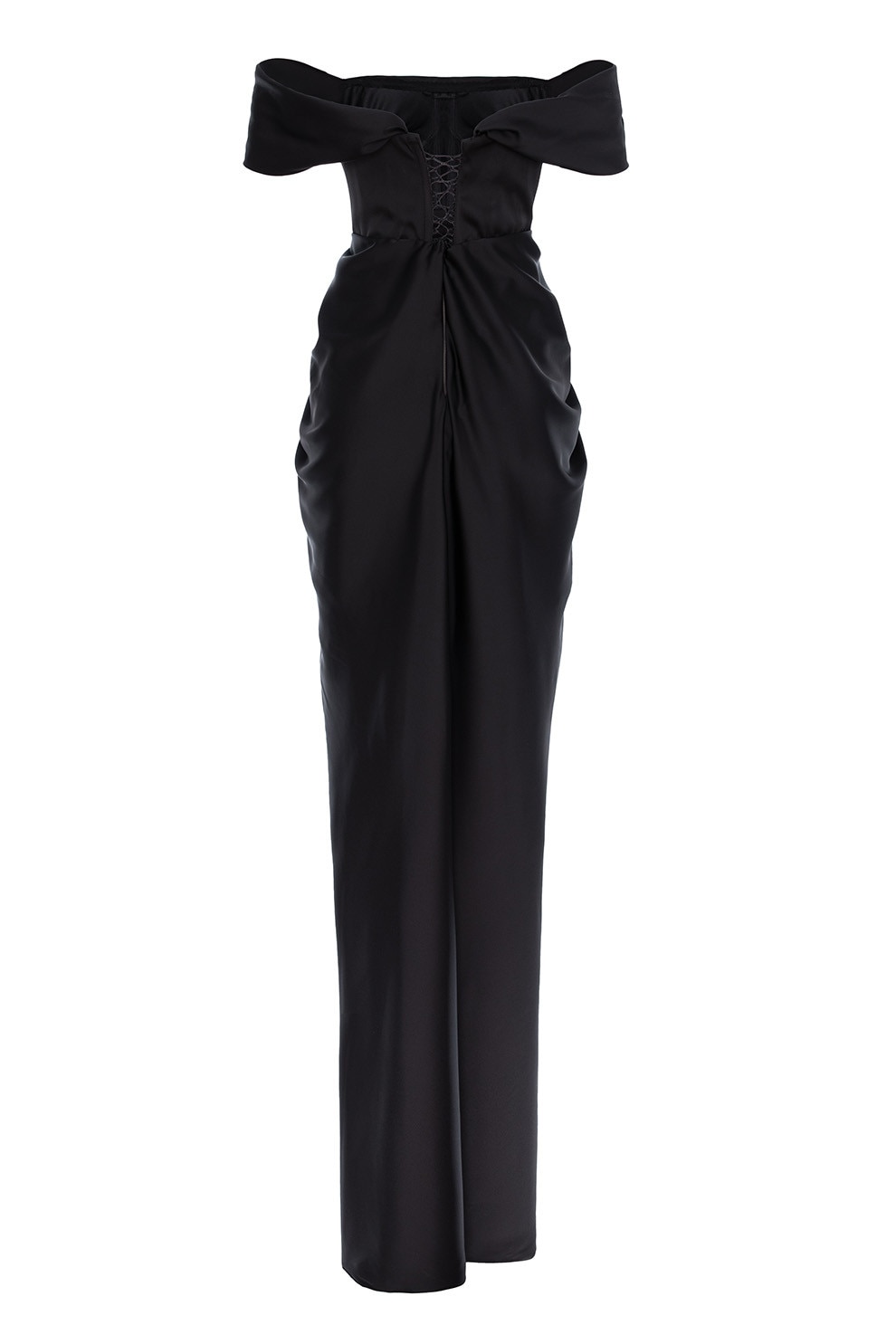 Acob à porter, Rochie maxi drapata cu decolteu pe umeri, Negru