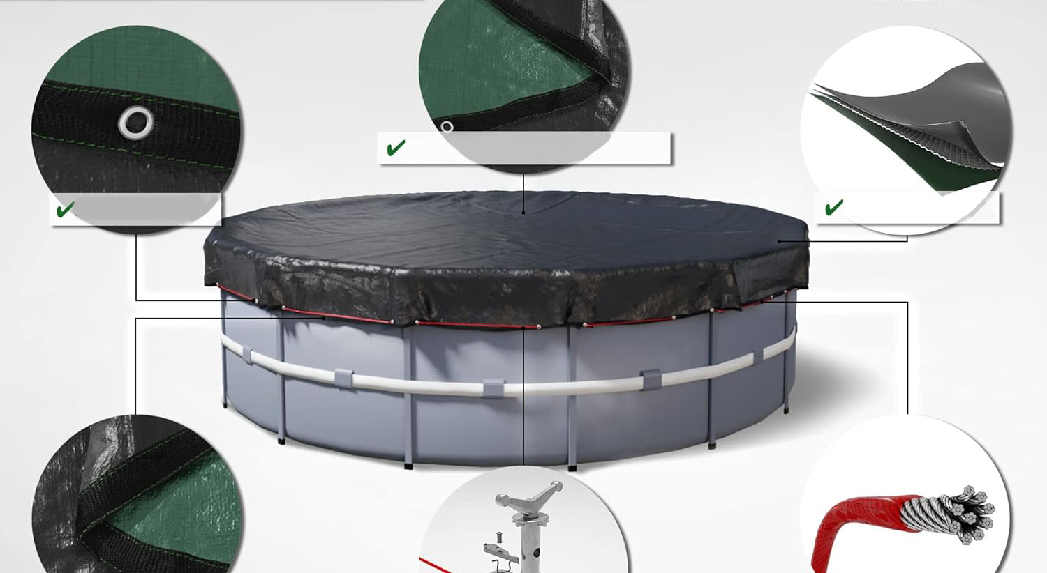 Acoperis pentru bazin Planenfux 2-in-1, 305 cm, neagra si verde, fara tensiune si cablu