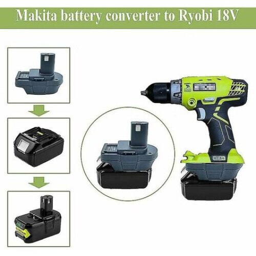 Adaptor baterie litiu, Makita la Ryobi, 18 V, 125 x 90 x 112 mm, negru