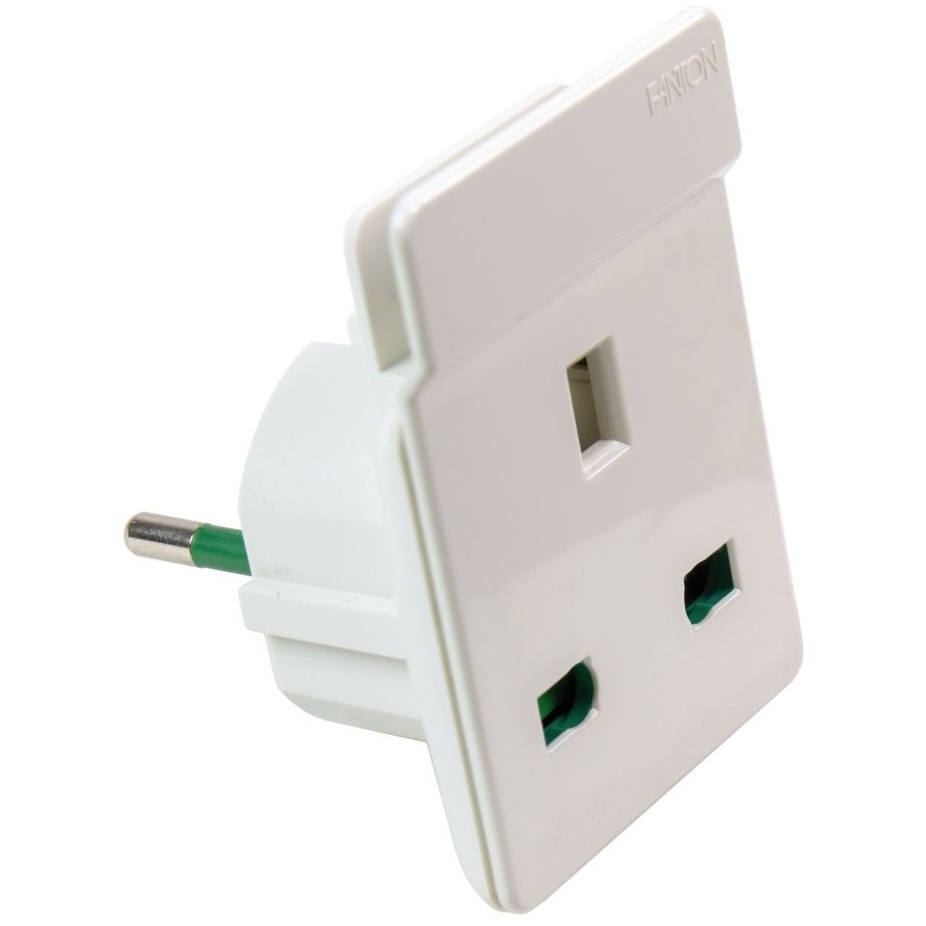 Adaptor Englezesc Priza Tip Engleza/Schuko, Cu Suport Pentru Telefon, Protectie copii, 16A, 2P+E, 1500W, AC 250V, Alb, Fanton Italia