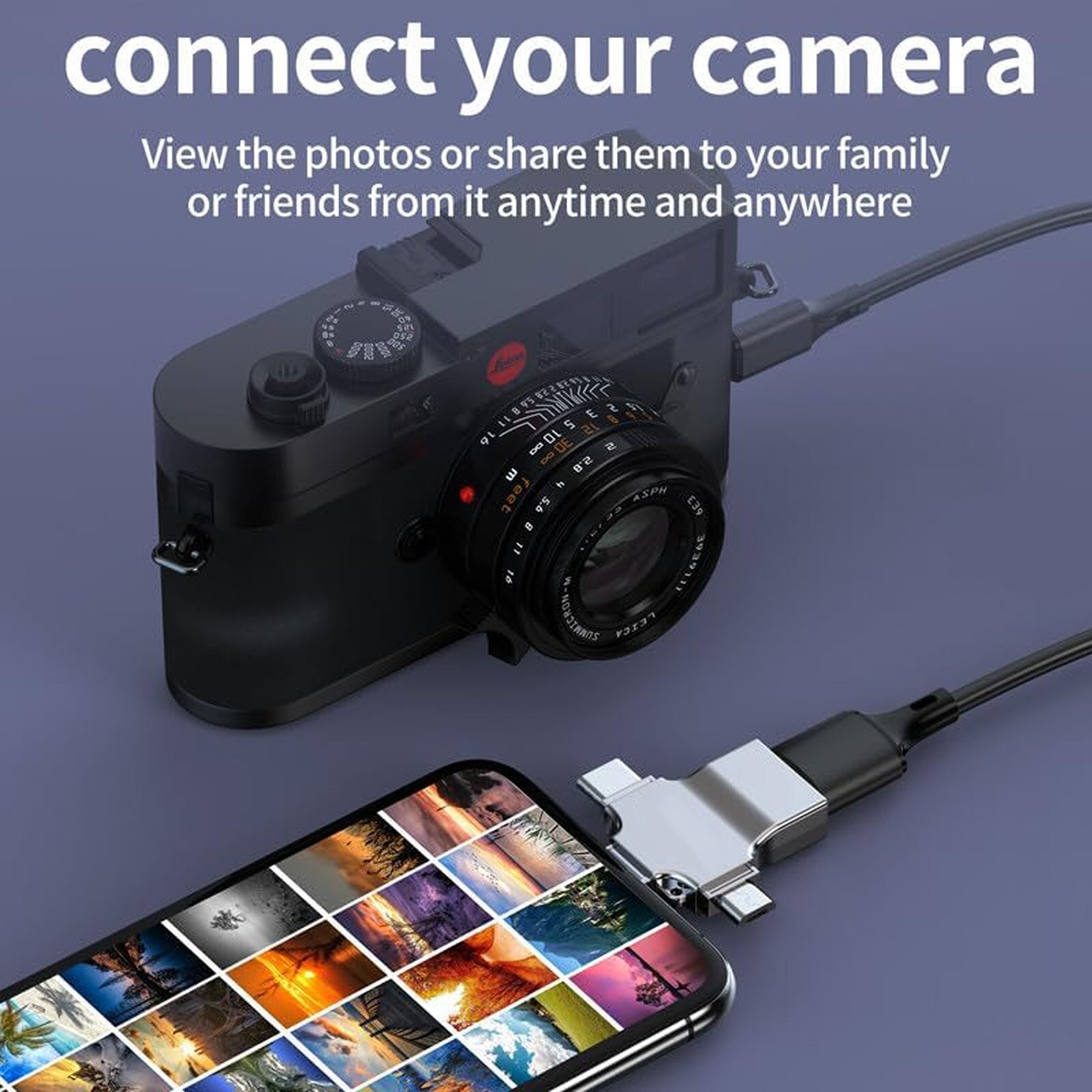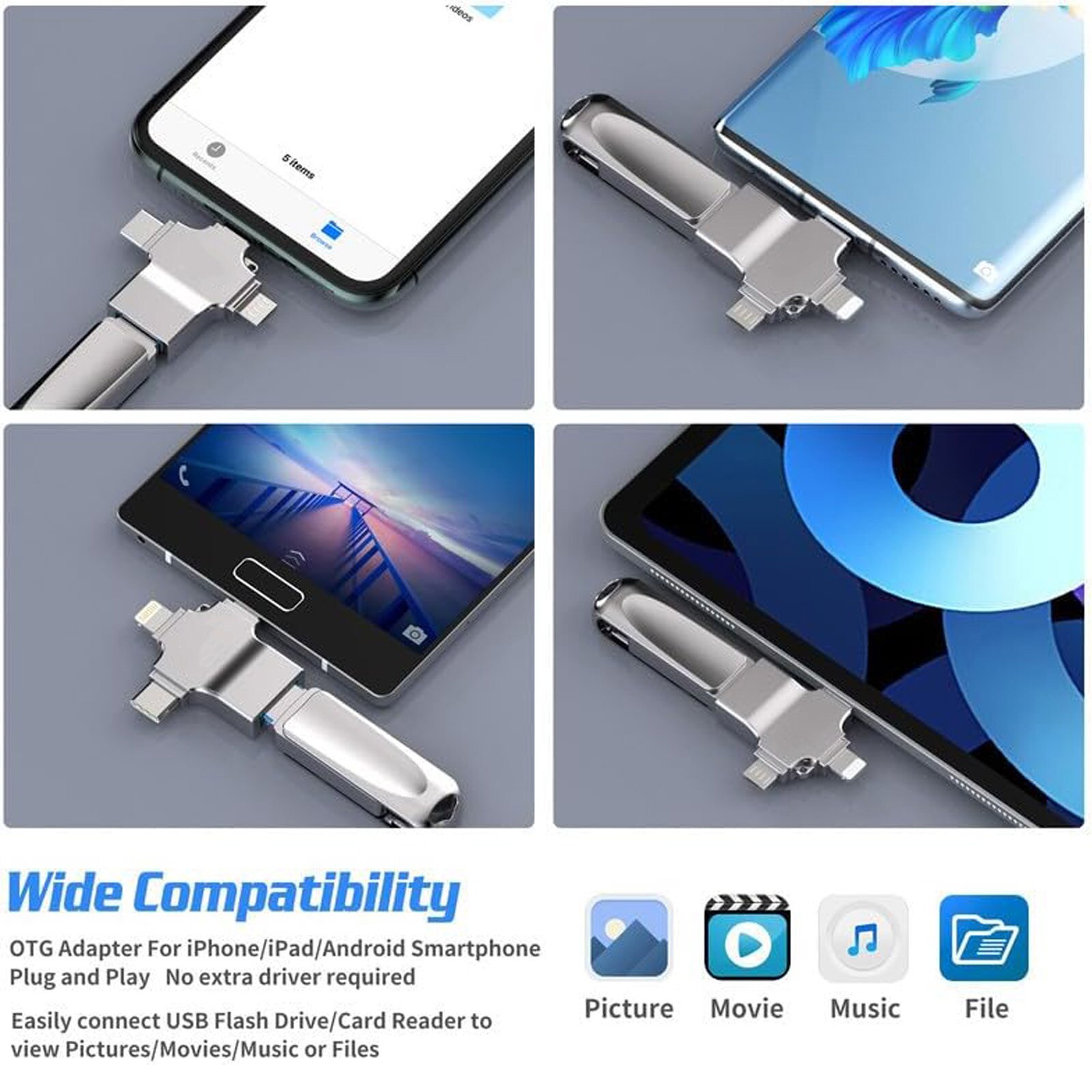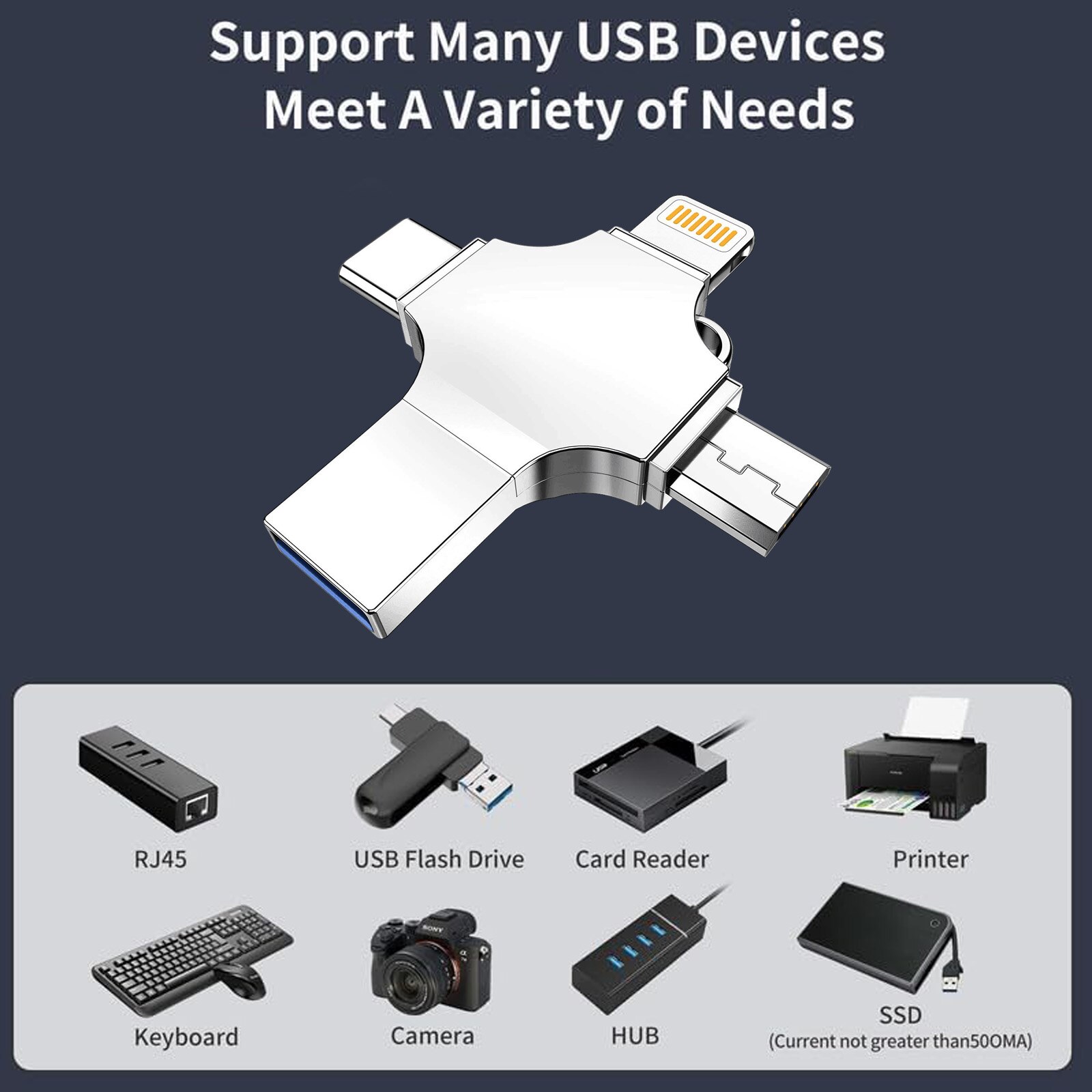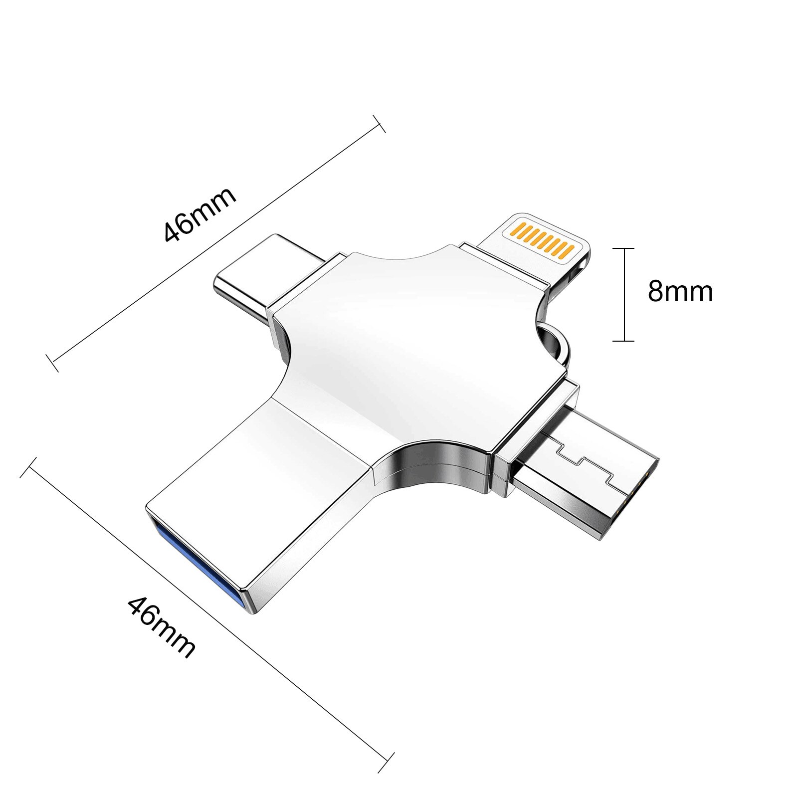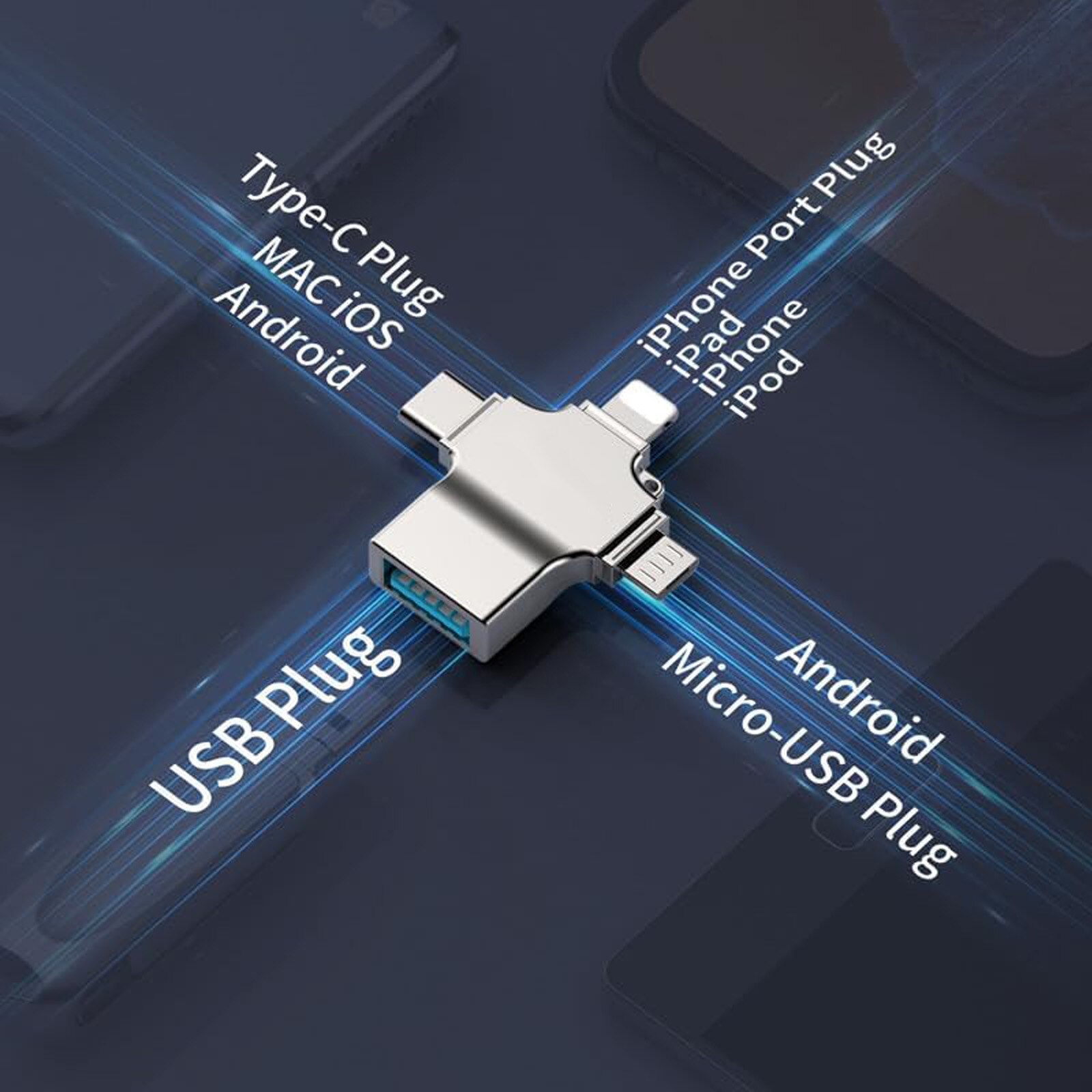 Adaptor multiport 4 in 1, Axroad Mall, USB 3.0/Lightning/Type-C/TF/Micro-USB, Extinde spatiul de stocare, Transmite datele foarte rapid, Nu driver, Compatibil cu Apple, Samsung, Huawei, Portabil, Metal, 46x46x8mm, Argintiu