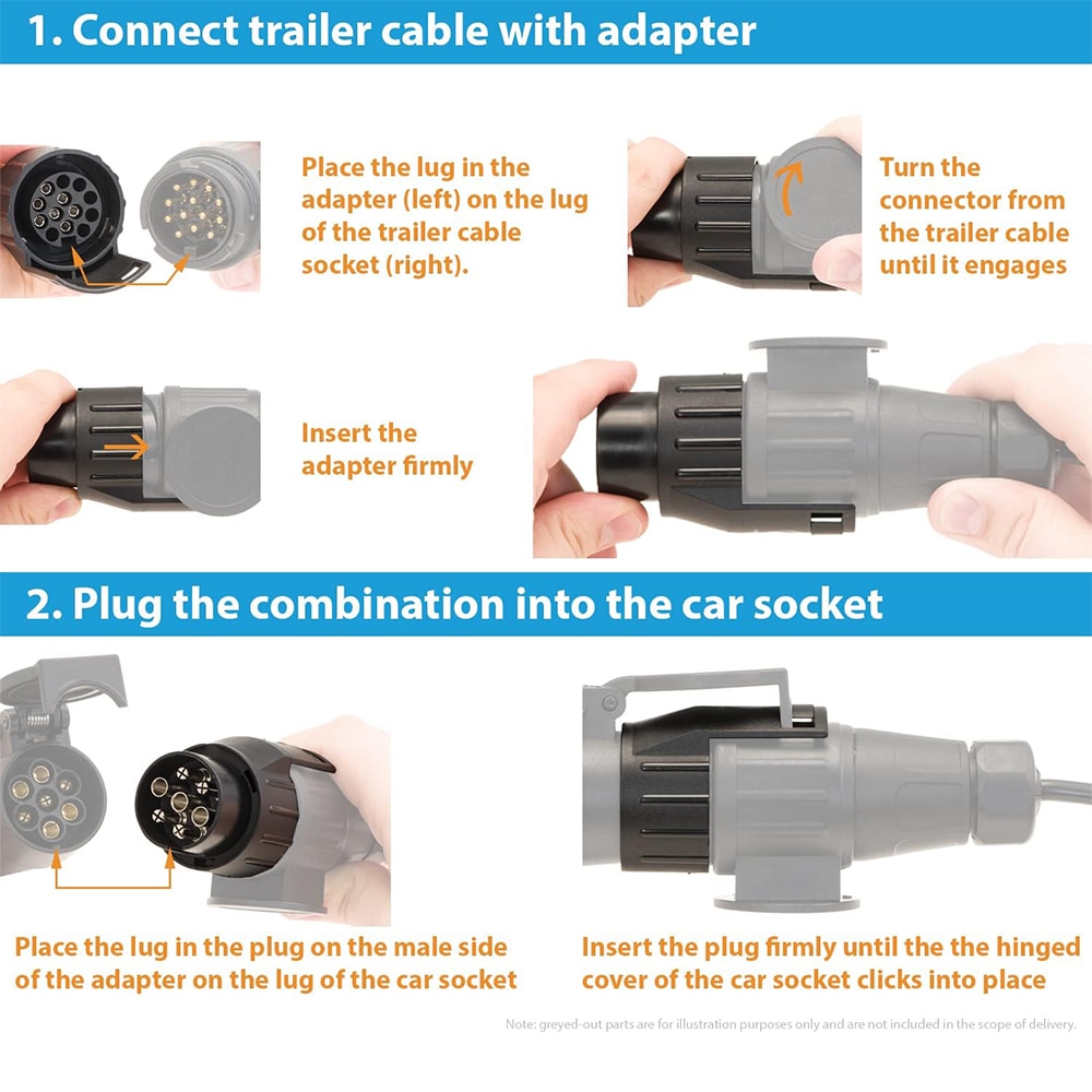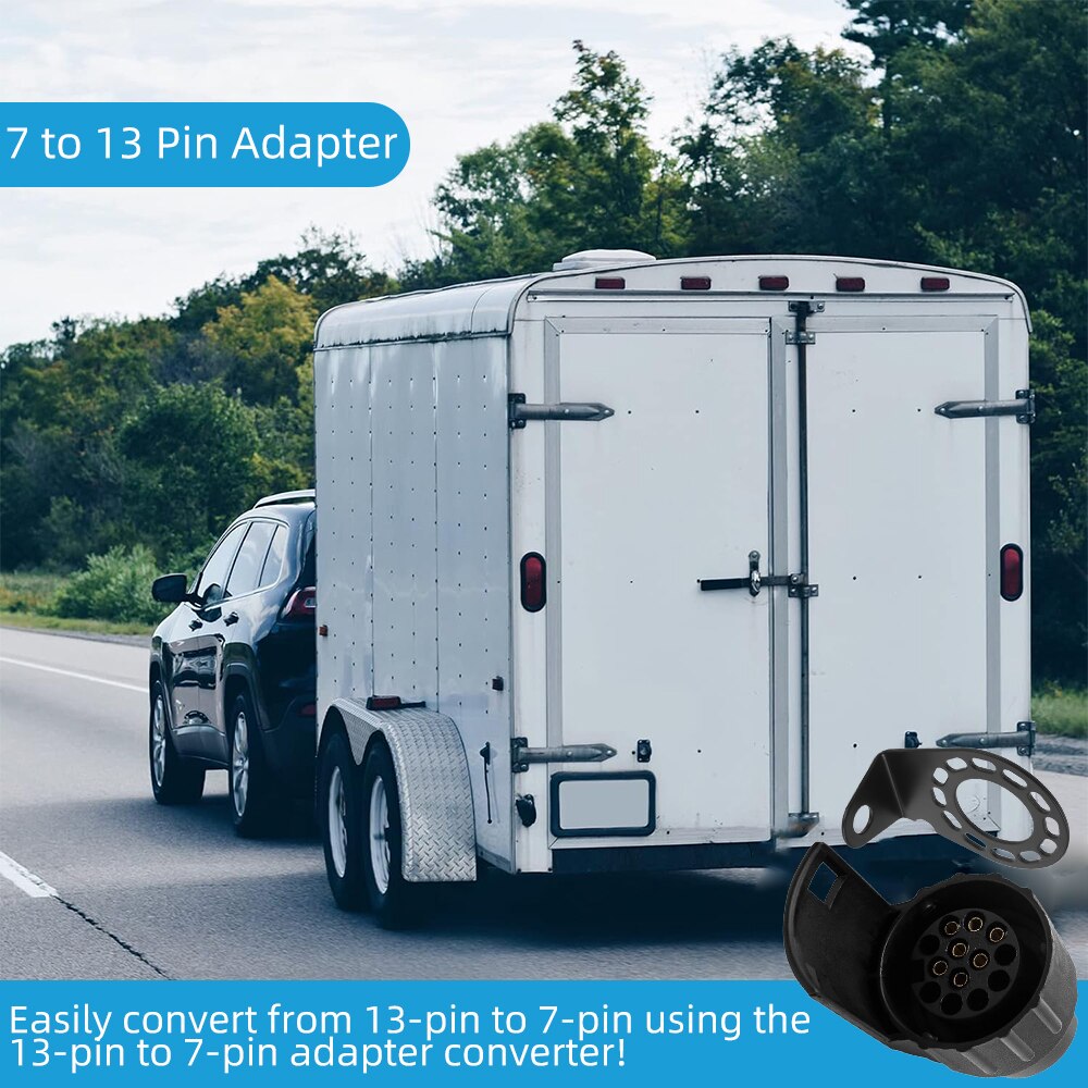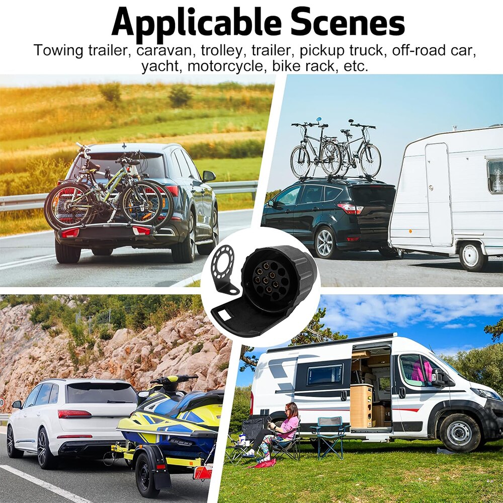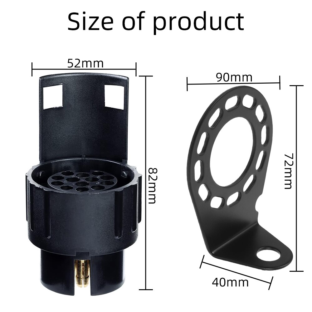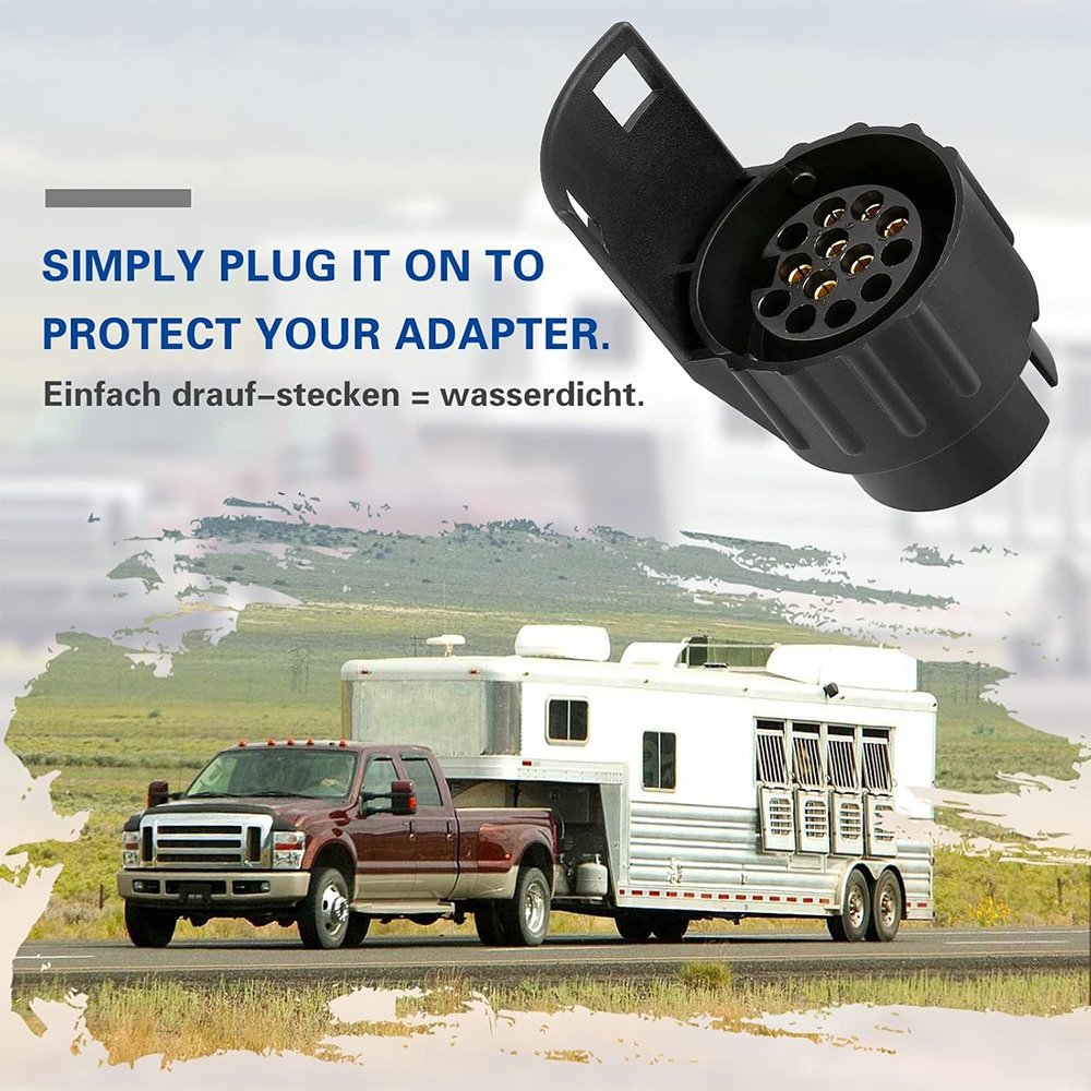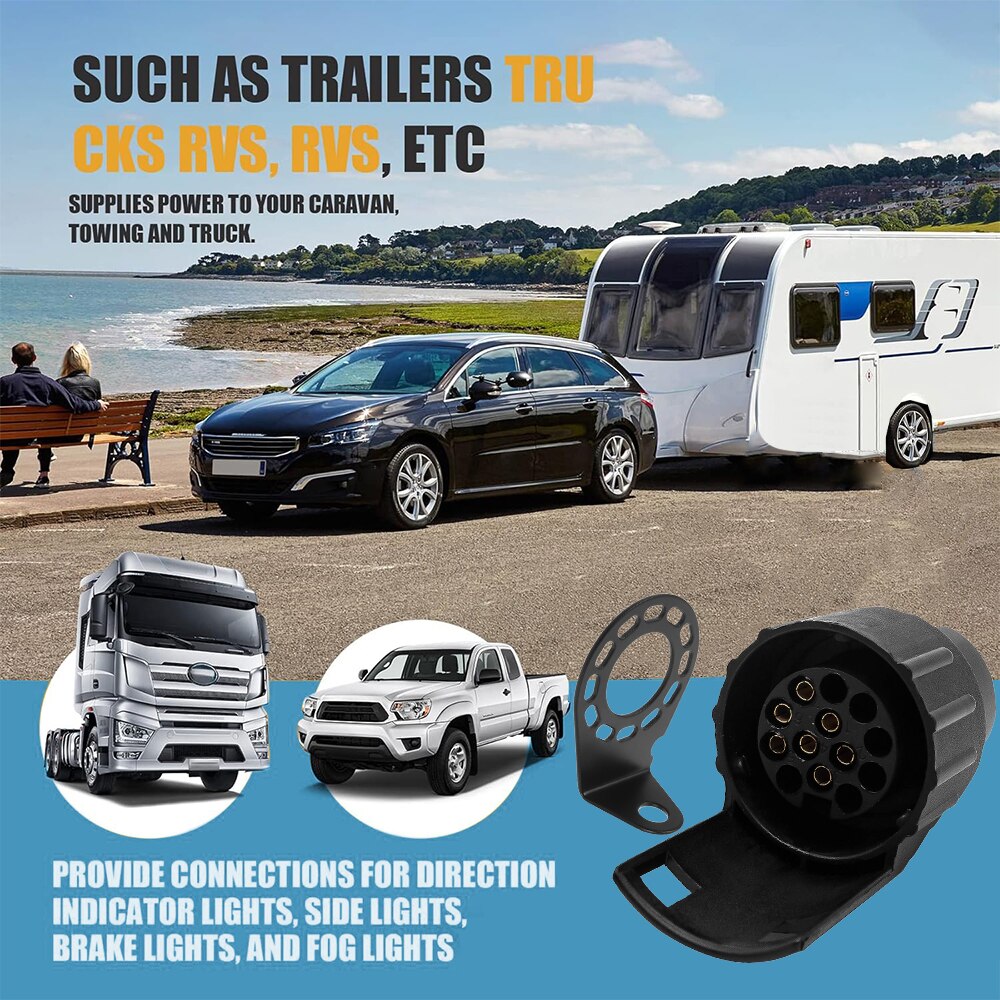 Adaptor pentru remorca, Minetgnon®, Cu suport priza remorca, 7 la 13 pini, 12V, Cu capac de protecti, Impermeabilizare, Nylon/Brass, 2 piese, Negru