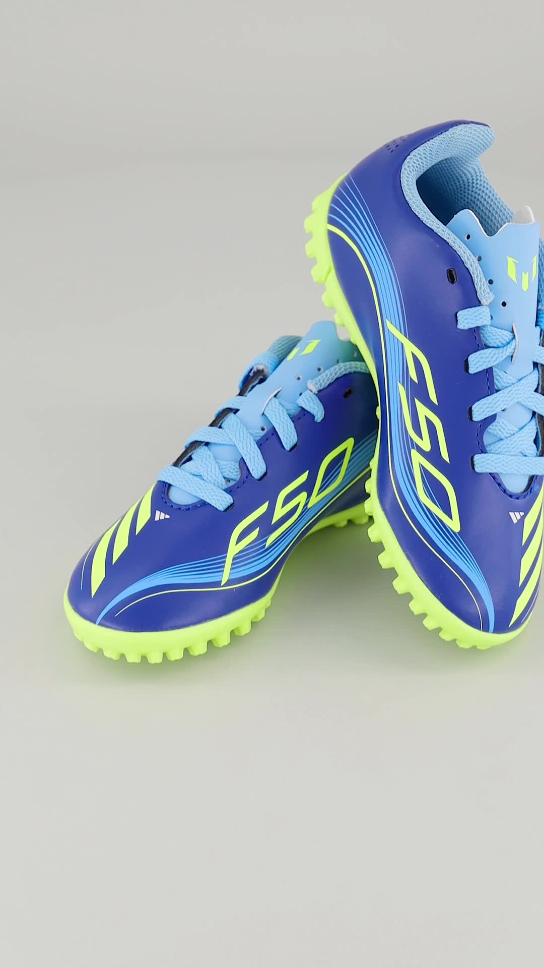 adidas Performance - Pantofi F50 Messi Club pentru fotbal, Albastru royal, Verde lime, 35 EU