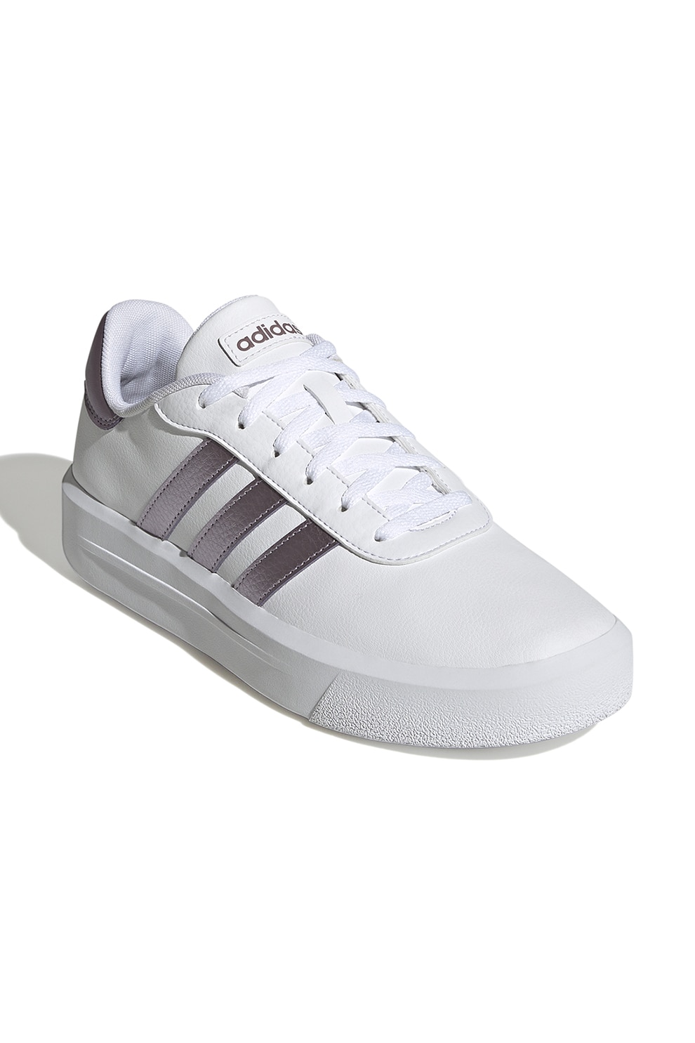 adidas Sportswear, Pantofi sport din piele ecologica cu detalii logo Court, Alb, Argintiu inchis, 5