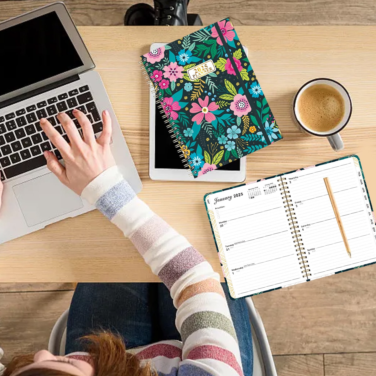 Agenda academica 2024-2025, Enforose, coperta tare, design flori colorate, 21.7x15.8cm, set 1 buc.