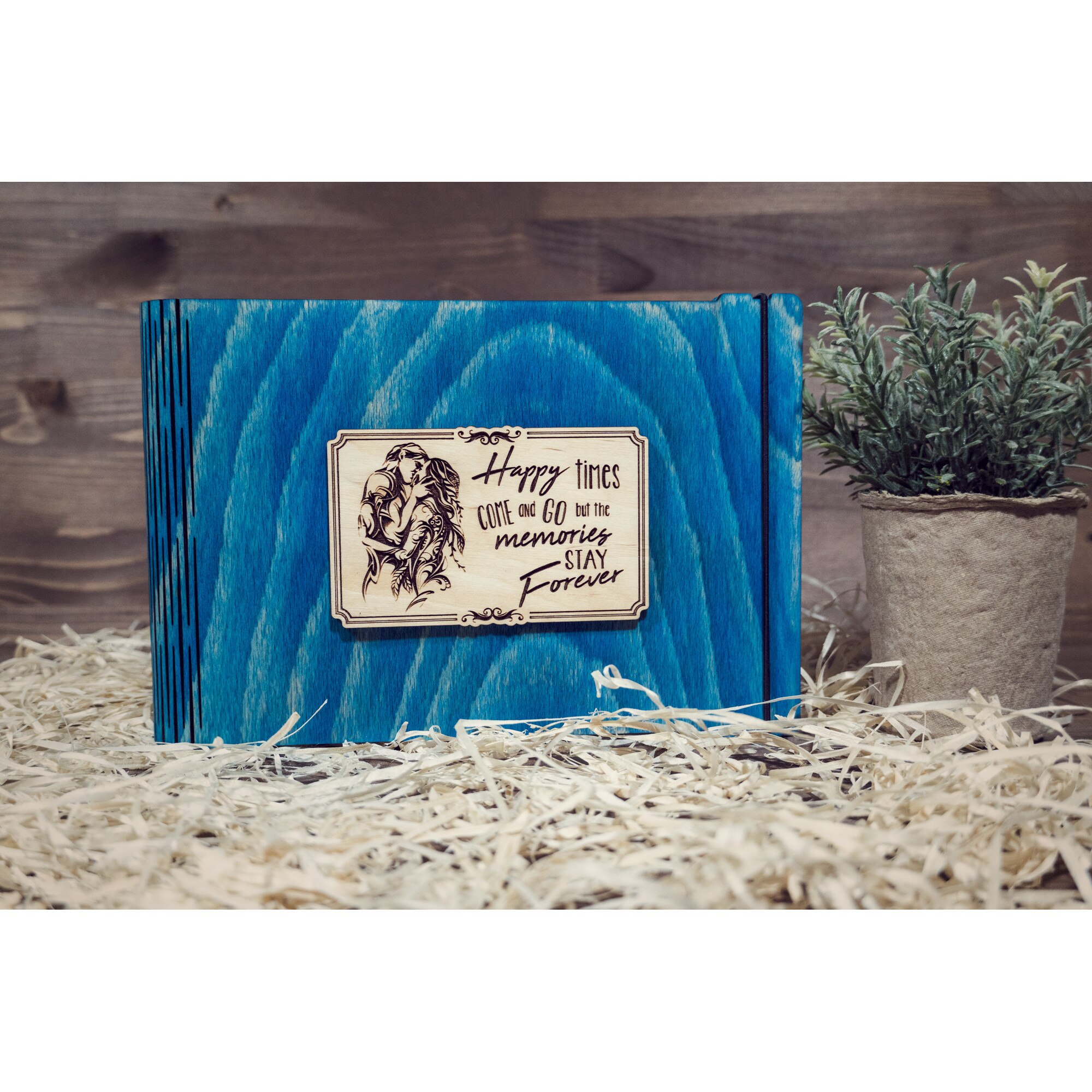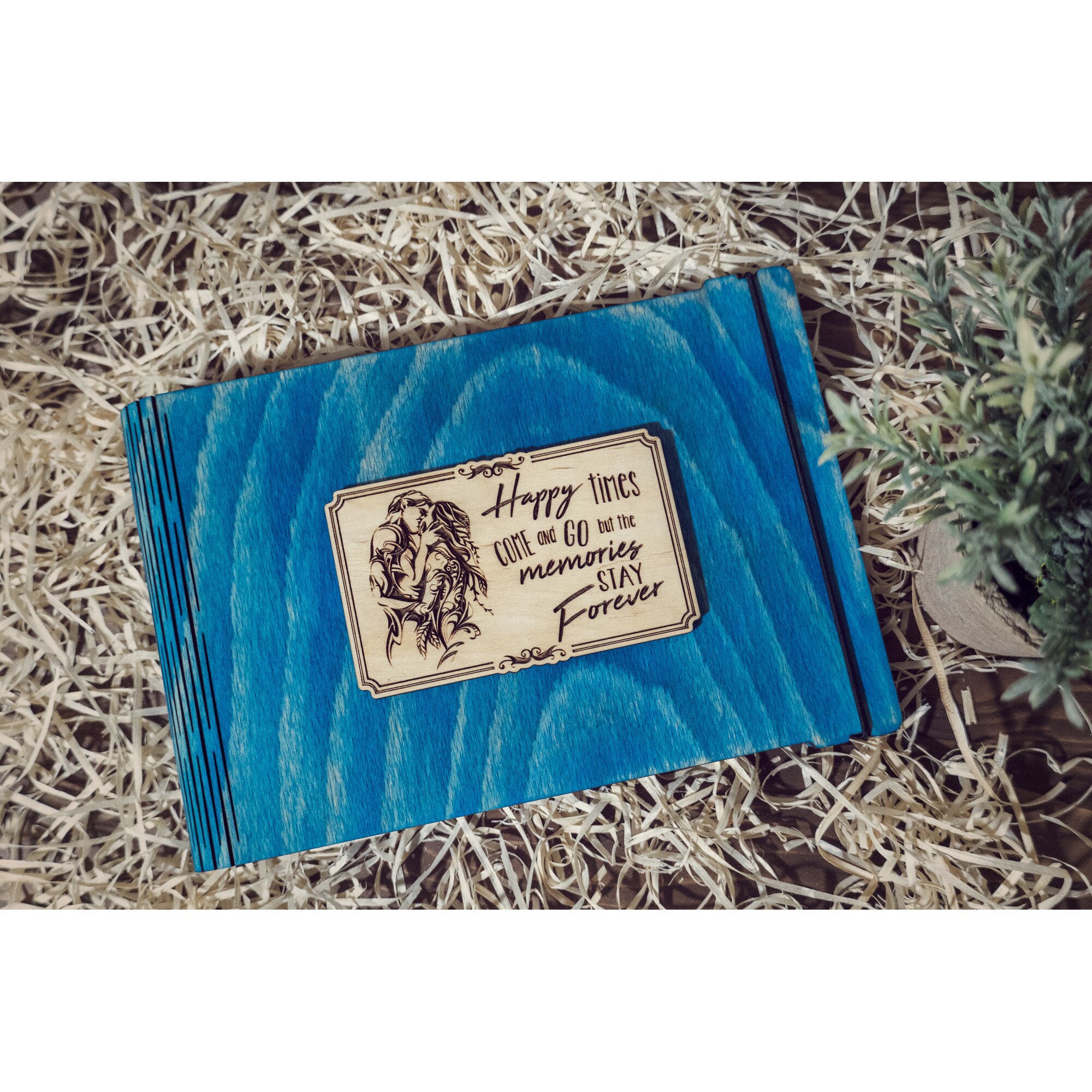 Album foto A5 din lemn, VintageBox, " Sarutul perfect – Happy Time", albastru