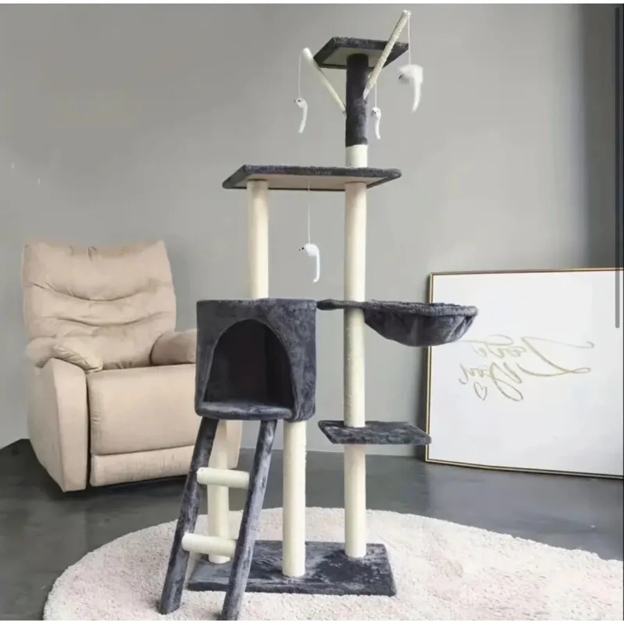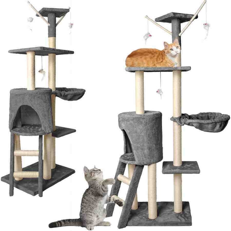 Ansamblu joaca pisici, Selgot, Dimensiune 139 x 49, Cu 5 nivele, 3 jucarii Incluse, Culoare Gri