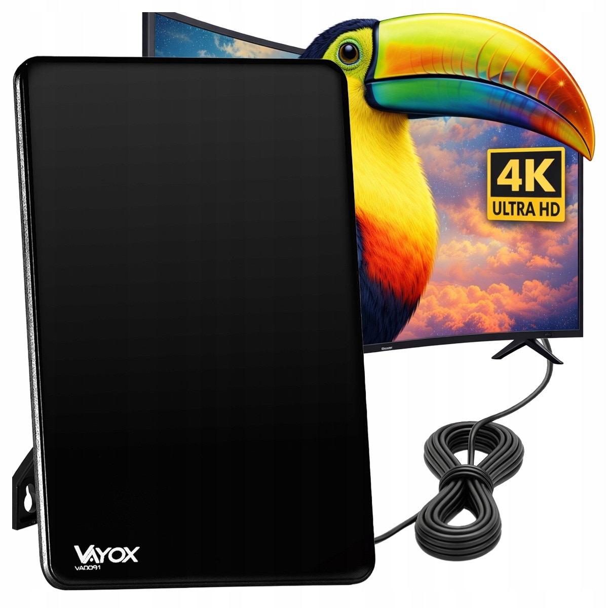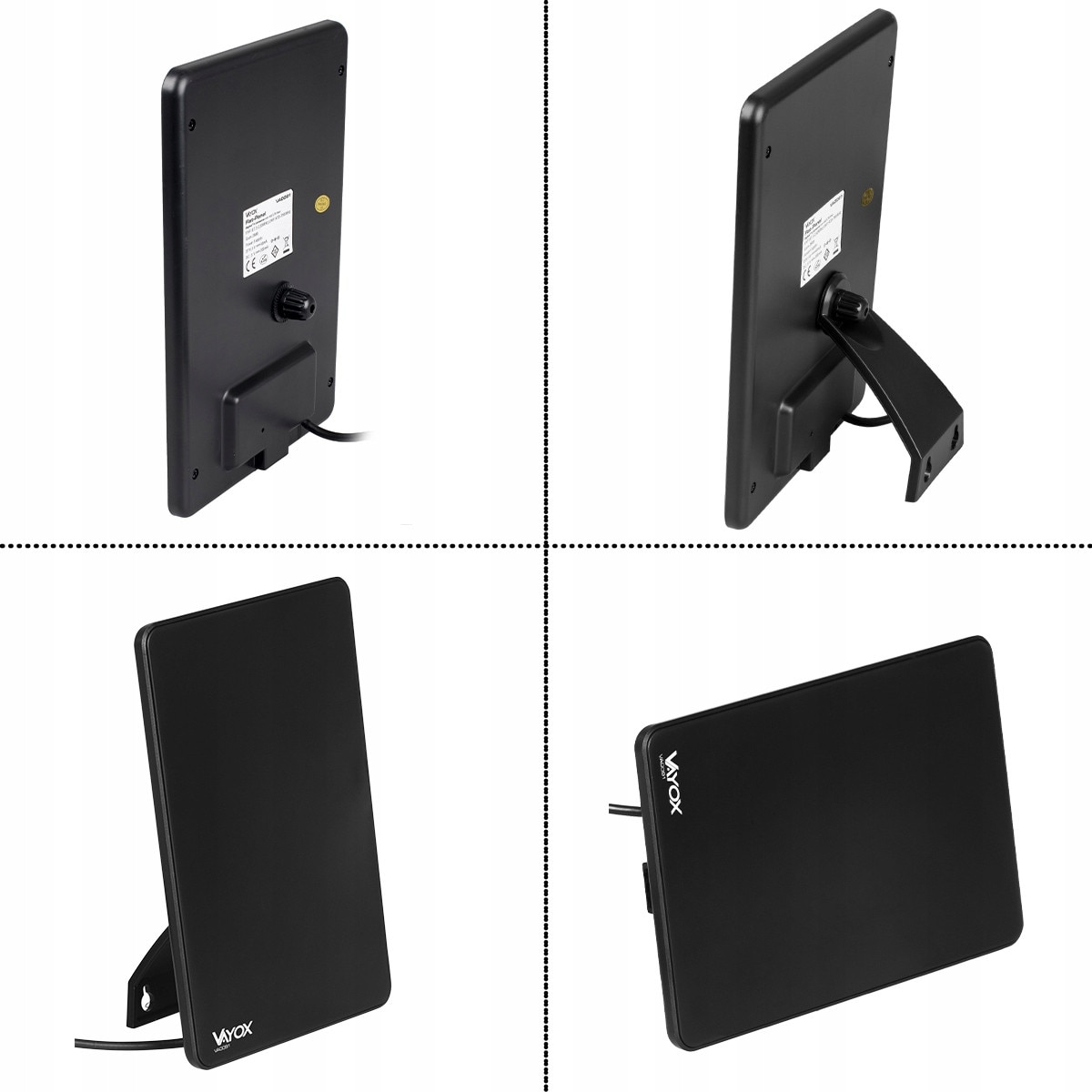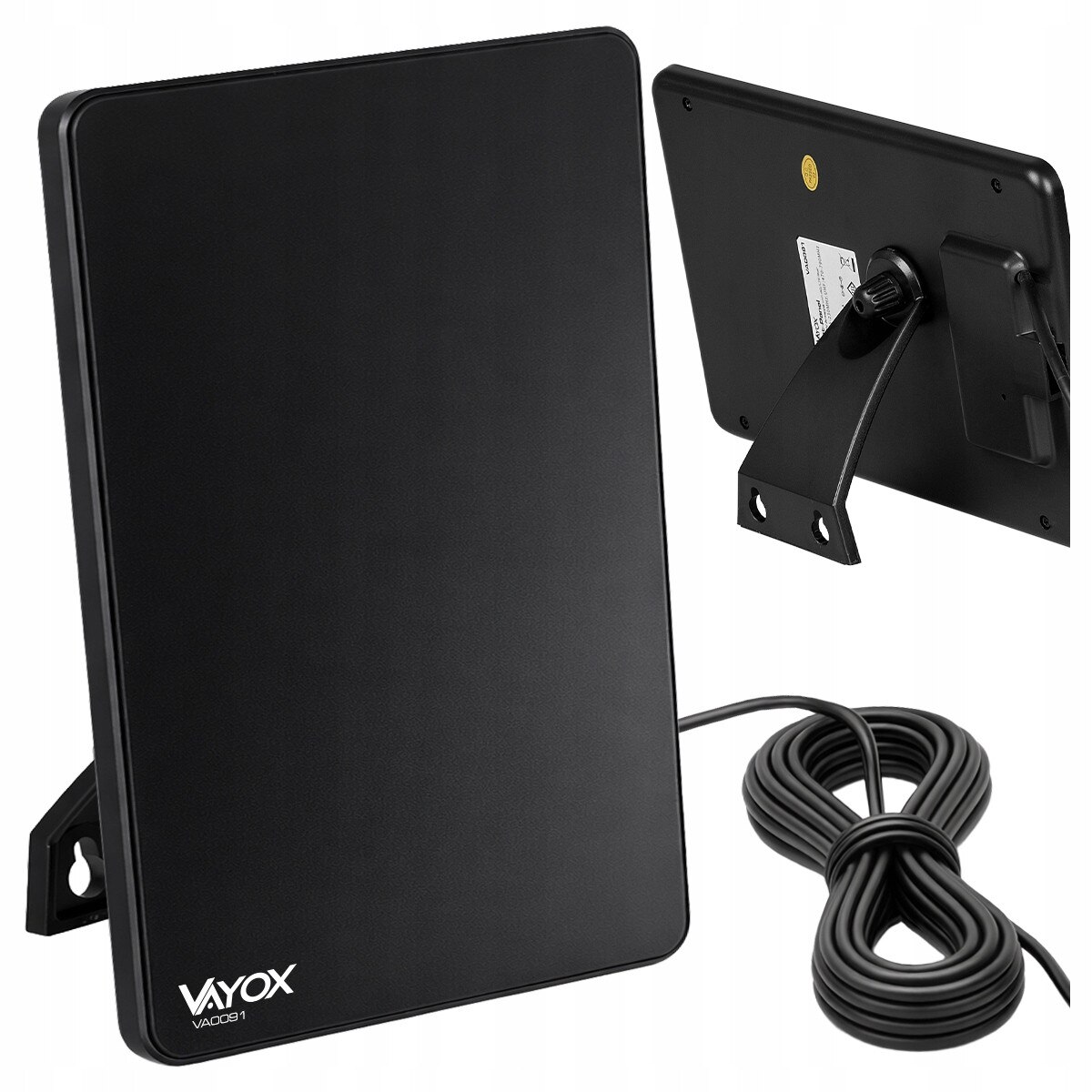 Antena TV Vayox, pentru televiziune terestra DVB-T/DVB-T2, Cu amplificator, interioara, VHF, UHF, FULL HD, 4K, filtru LTE 4G, Cablu 2m, 5V
