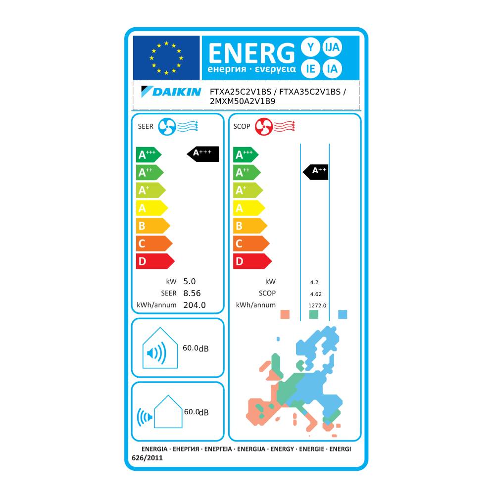 Acest sistem face parte din gama Bluevolution, caracterizata de folosirea agentului frigorific R-32, care reduce cu 68% impactul asupra incalzirii globale (GWP) si imbunatateste performanta energetica a aparatului.