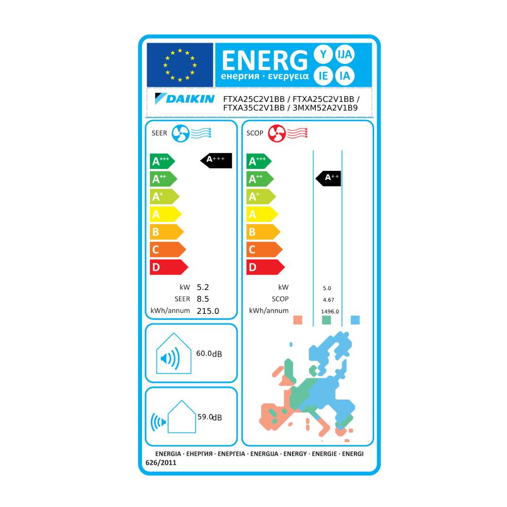 Acest sistem face parte din gama Bluevolution, caracterizata de folosirea agentului frigorific R-32, care reduce cu 68% impactul asupra incalzirii globale (GWP) si imbunatateste performanta energetica a aparatului.