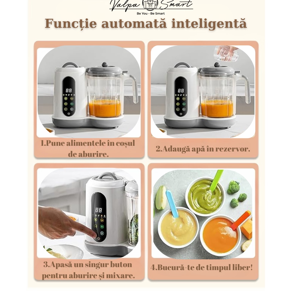 Buna ziua, probabil nu ati pus capacul cum scrie ca in manualul de instructiuni (trebuie sa fie varful in dreptul Lacatului). Iar partea cu culoarea portocalie este un fenomen normal, deoarece sunt produse din polipropilena alimentara. Aceste materiale din care sunt compuse produsele, respecta niste standarte foarte stricte fara BPA, fara xalati, PET, ETC deoarece sunt destinate sugarilor si datorita acestor compozitii prietenoase, structura se coloreaza in timpul utilizarii deoarece legumele contin coloranti naturali.