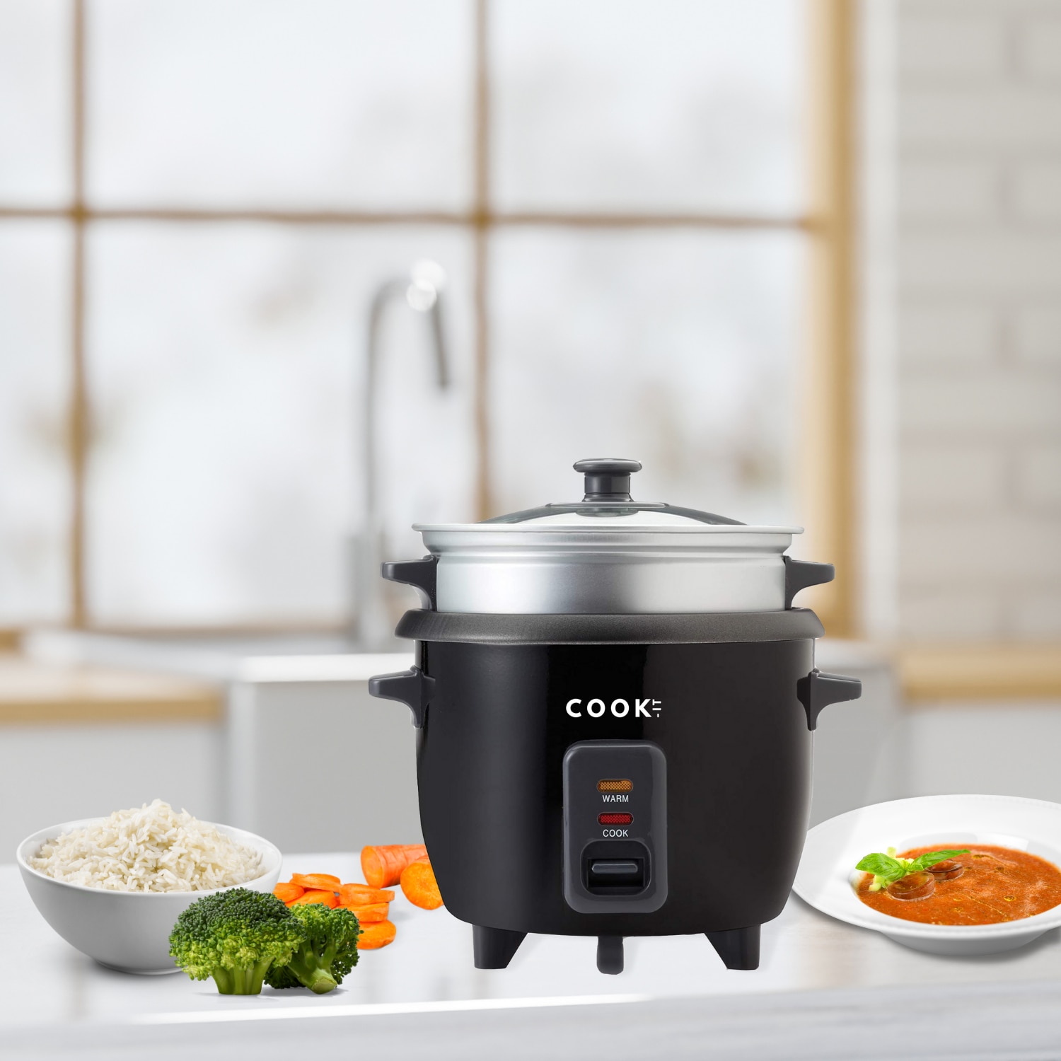 Aparat de gatit orez, supa, legume si peste cu aburi COOK-IT, Capacitate 1,5 L, Functie de pastrare la cald, Preparare 2 retete simultan datorita celor 2 compartimente