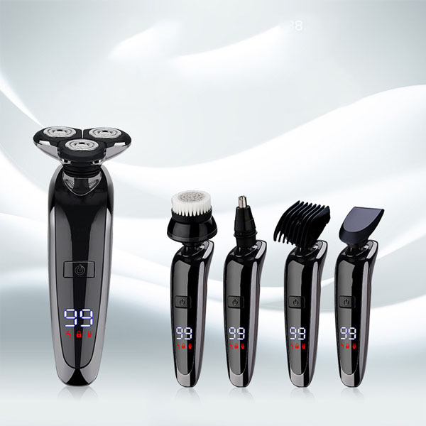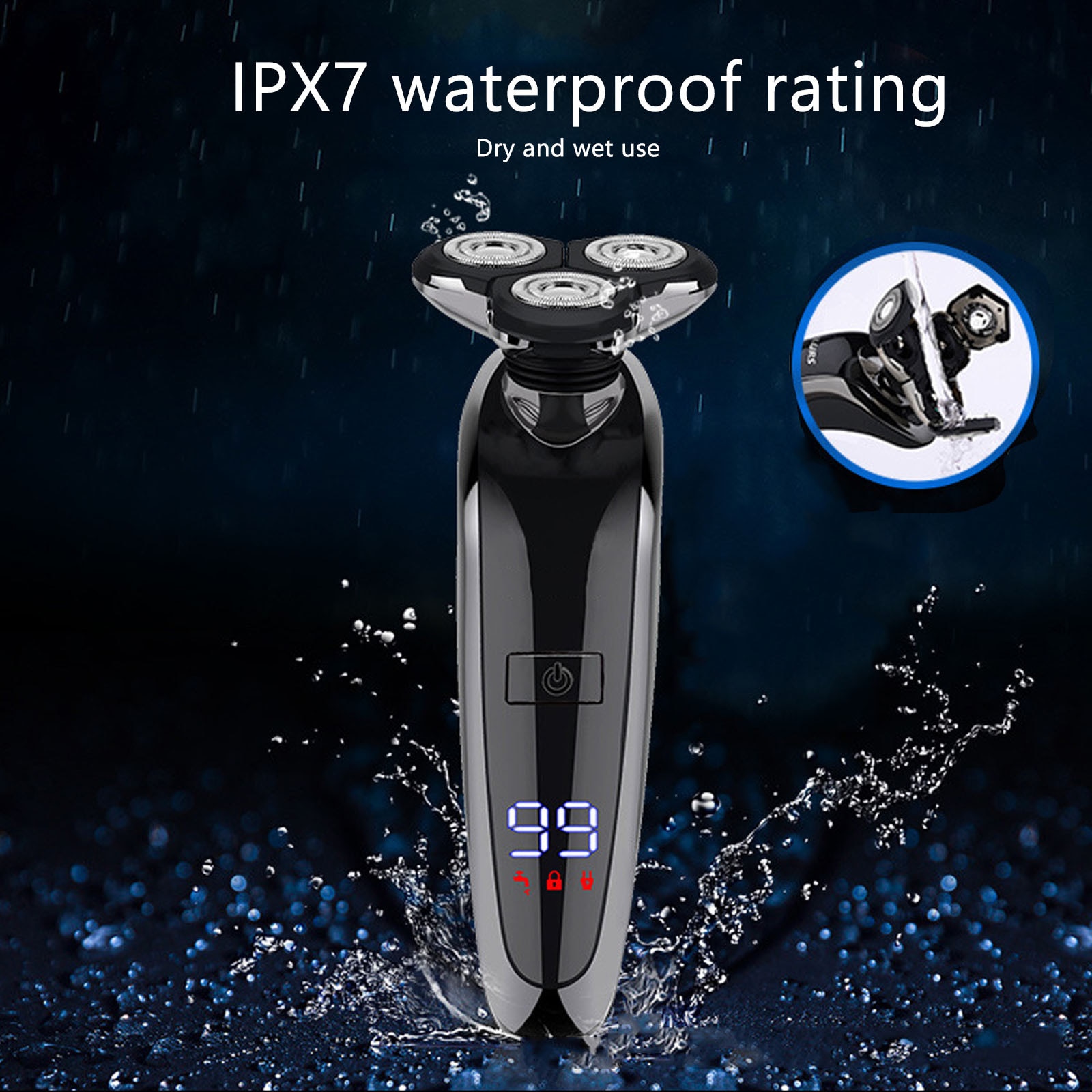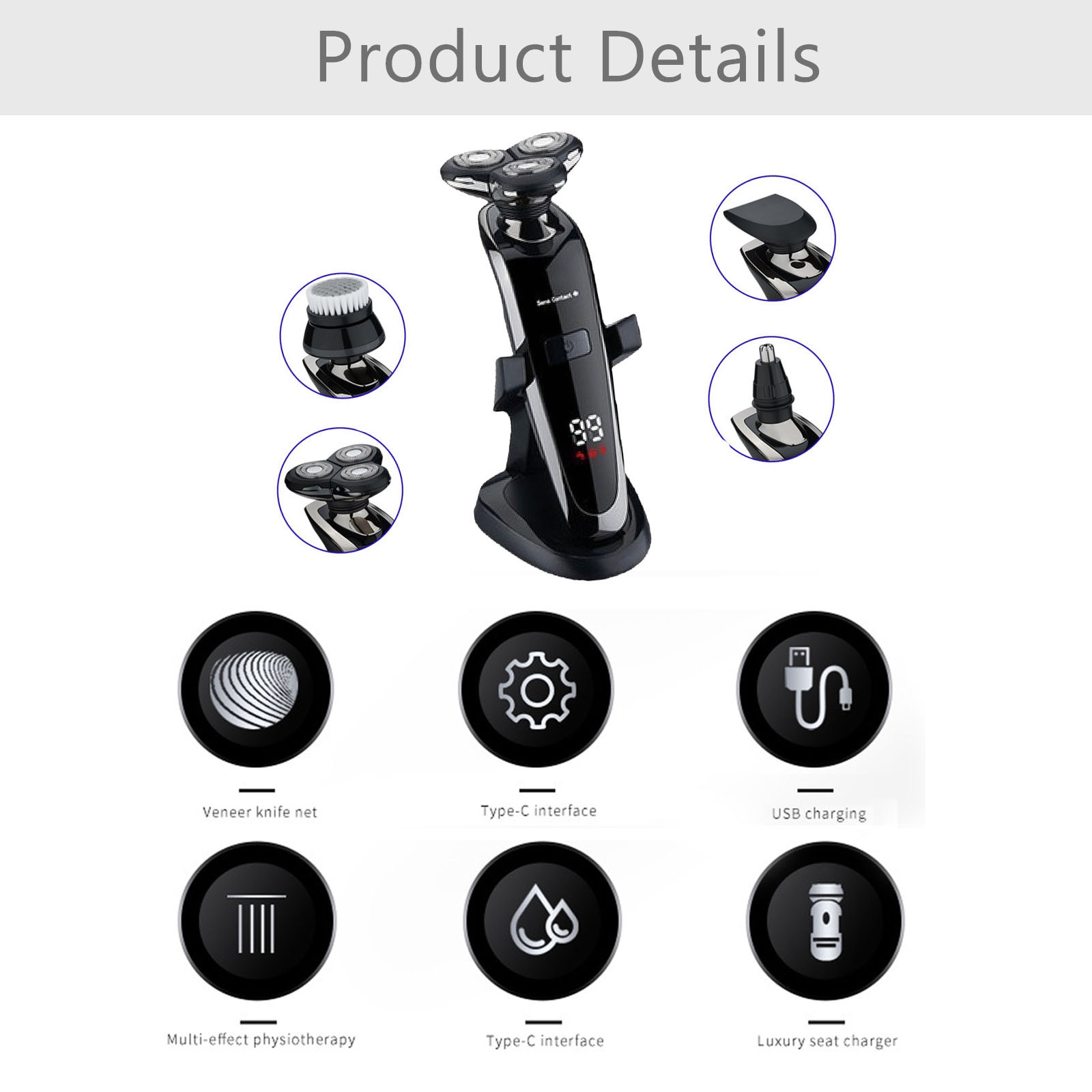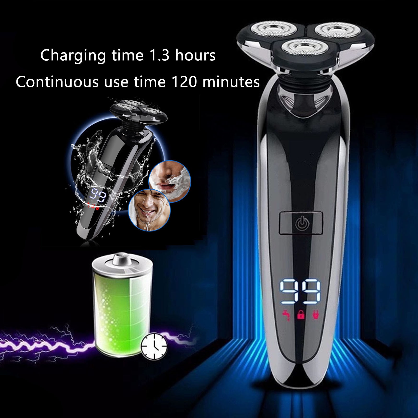 Aparat de Ras Electric Multifunctional 4 in 1, asskanaer, Pentru Barbati, cu capete 3D rotative, Display LED, Rezistent la apa IPX7, Utilizare umeda si uscata, Lame din otel inoxidabil, Incarcare USB rapida, Trimmer nas si barba, ABS, 20.5x8.8x15cm, Negru
