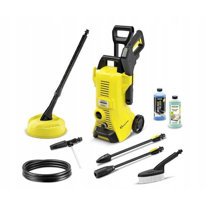 Datorita consultantului integrat in aplicatia „Home & Garden” din dispozitivul inteligent, care este legat de curatatorul de inalta presiune K3 Power Control, utilizatorul dispozitivului poate obtine cele mai bune rezultate de curatare – si poate deveni un adevarat expert in curatare. Aplicatia ofera asistenta completa pentru utilizatori - inclusiv informatii furnizate pe dispozitiv si un link catre portalul de service Karcher. Nivelul corect de presiune poate fi setat in aplicatie sau pe lancea de pulverizare si verificat pe afisajul pulverizatorului G 120 Q Power Control. Agentii de curatare sunt usor de inlocuit datorita recipientului integrat. Karcher K3 Power Control impresioneaza si prin manerul telescopic, care faciliteaza transportul dispozitivului si pastrarea acestuia intr-un loc convenabil. Poate fi folosit si ca al doilea maner de transport, facand foarte usor sa puneti dispozitivul pe un raft sau in portbagajul unei masini atunci cand este necesar. Setul, impreuna cu „Kit-ul Car & Home”, include o perie de spalat care produce o spuma bine absorbanta care indeparteaza la maximum murdaria, o duza pentru spuma, precum si 500 ml. sampon auto. detergent de suprafete T 1 detergent de suprafata si detergent de 500 mililitri "Patio & Deck" pentru curatarea teraselor si balcoanelor.