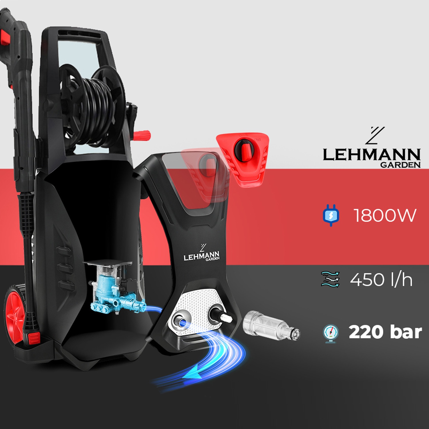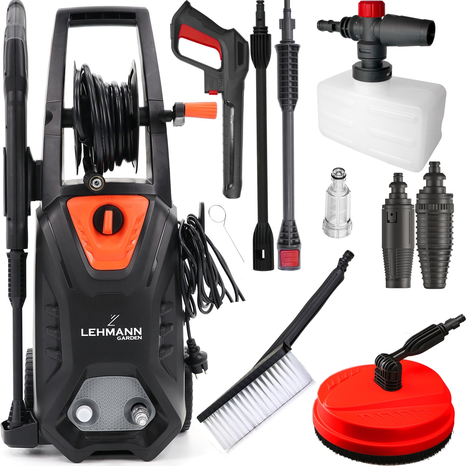 Aparat de spalat cu presiune, Lehmann Hudson, Alimentare La retea, 1800 W, 145/220 bar, 450 l/h, Negru/Portocaliu