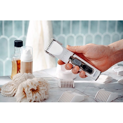 Aparat de tuns fara fir Camry CR 2841, 5 viteze, titaniu, waterproof, set cu 6 piepteni si accesorii