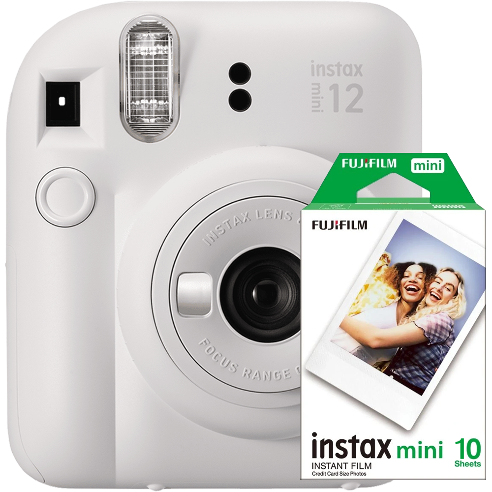 Aparat foto Instant Fujifilm Instax Mini 12 Clay White + Film Mini 1x10