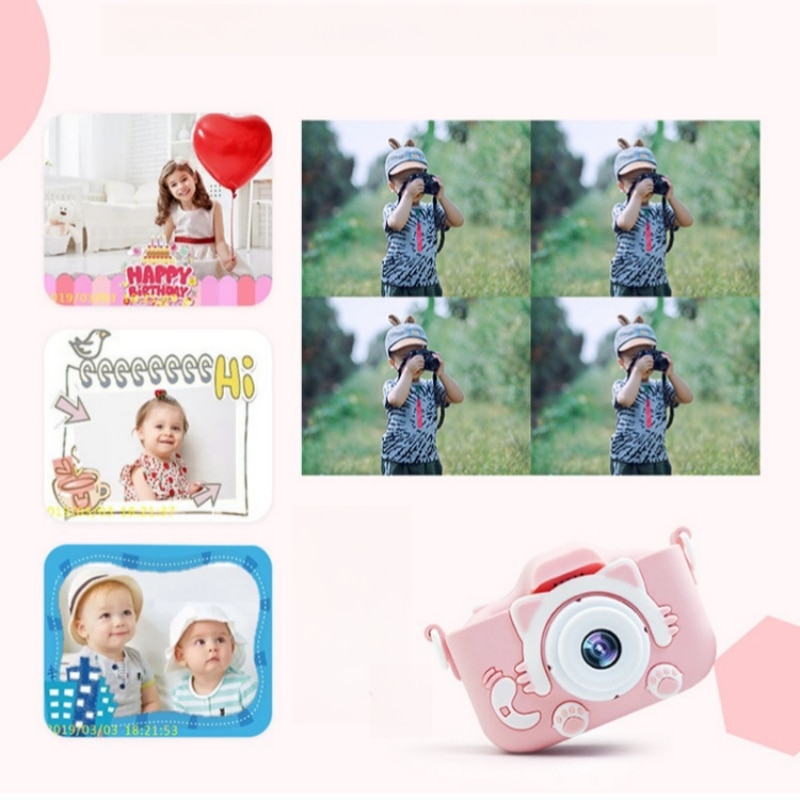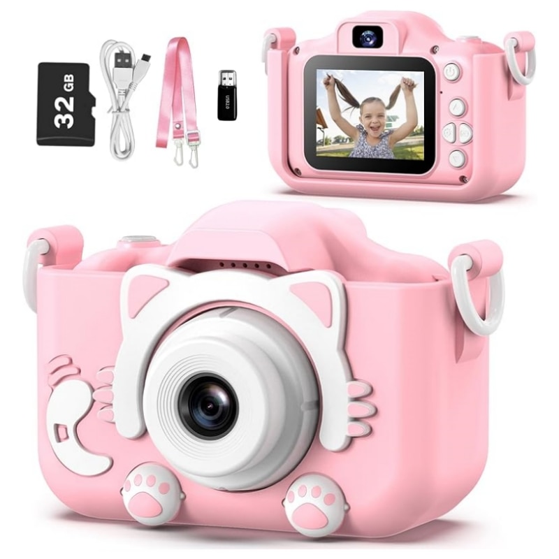Aparat foto pentru Copii, 1080p HD, ecran 2", roz, card de memorie 32GB inclus