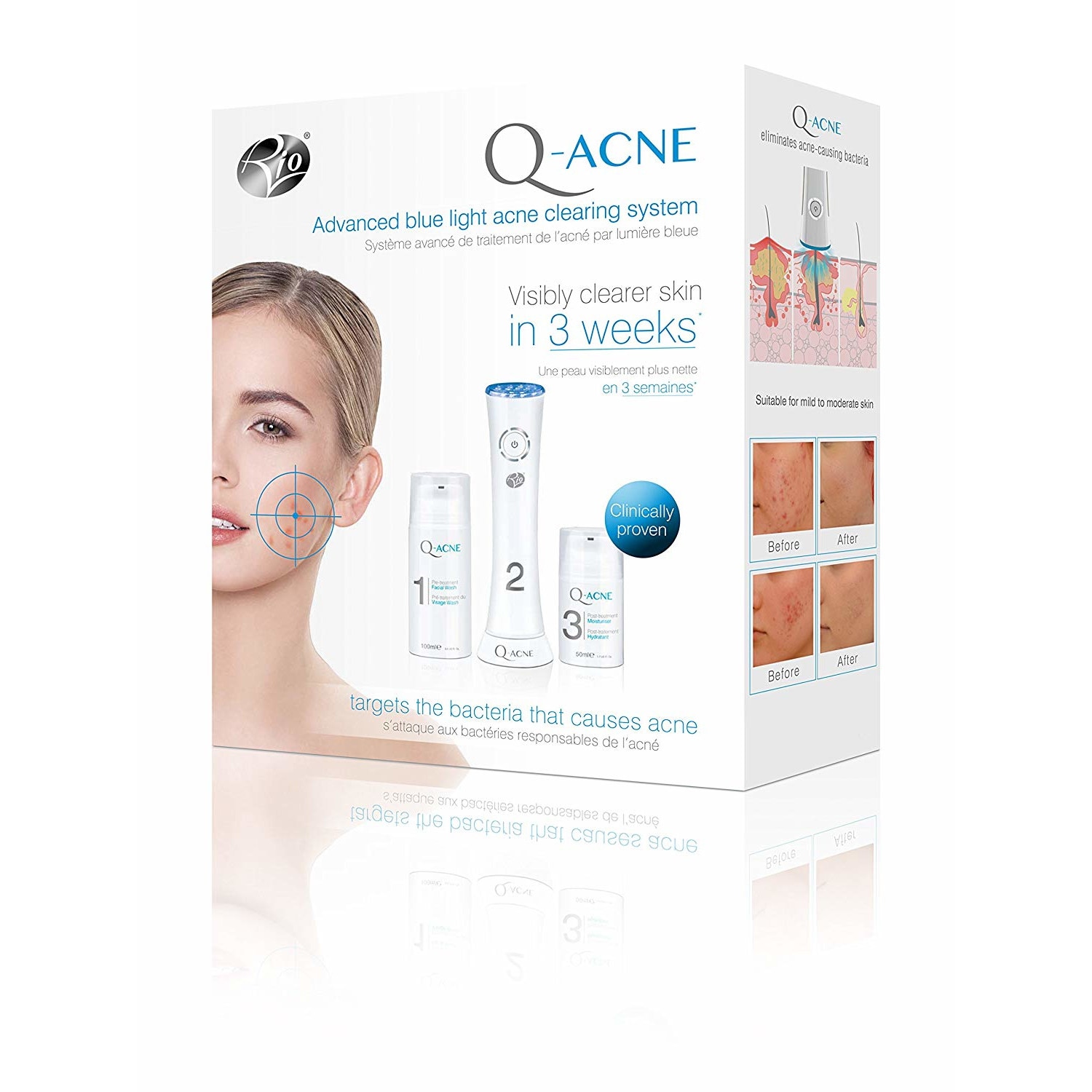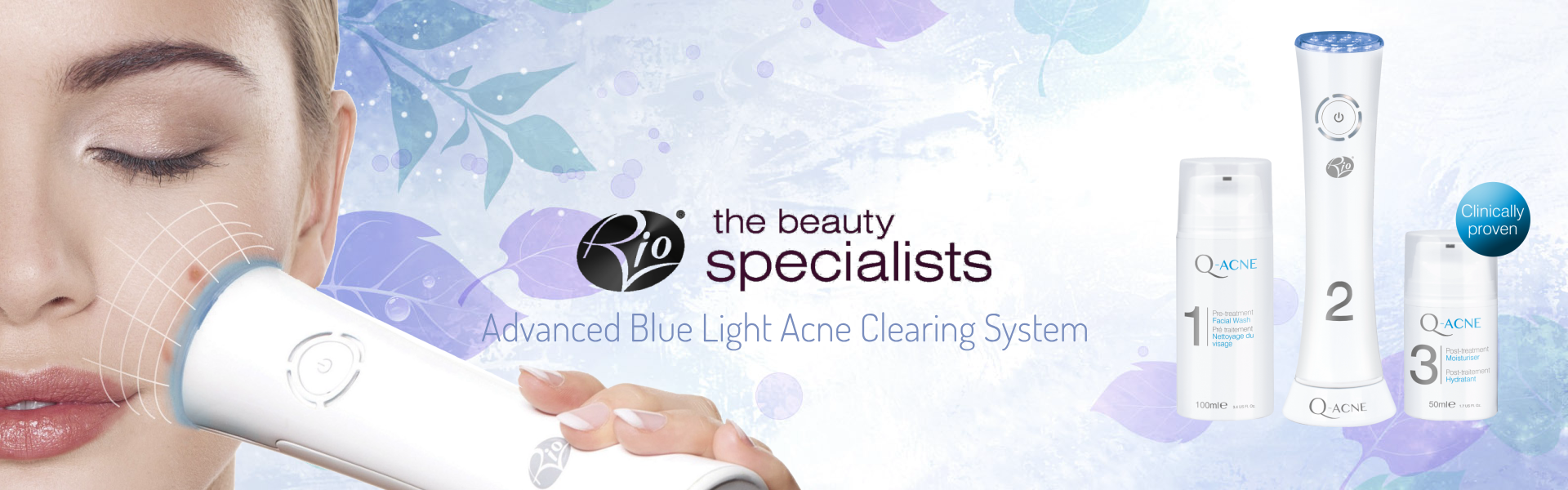 Aparat ingrijire faciala pentru tratarea acneei Rio Q-Acne Advanced Blue Light Acne Spot Treatment, Unde electromagnetice, Alb