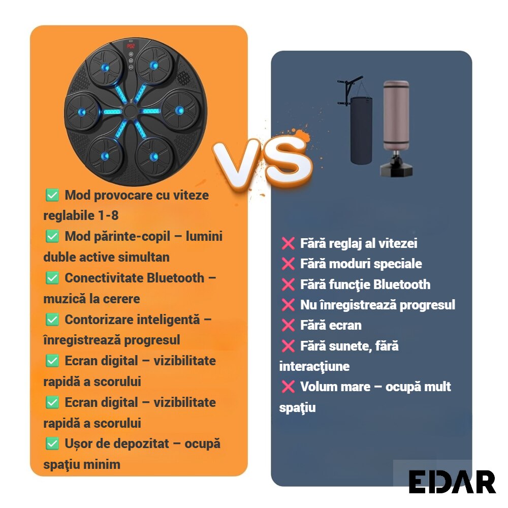 Aparat Inteligent De Box EDAR Cu Functii Muzicale, Iluminare LED RGB, Display HD, Bluetooth Si Difuzor Integrat, Ideal Pentru Copii Si Adulti, Cu Manusi Incluse, USB, Functii Smart, Negru