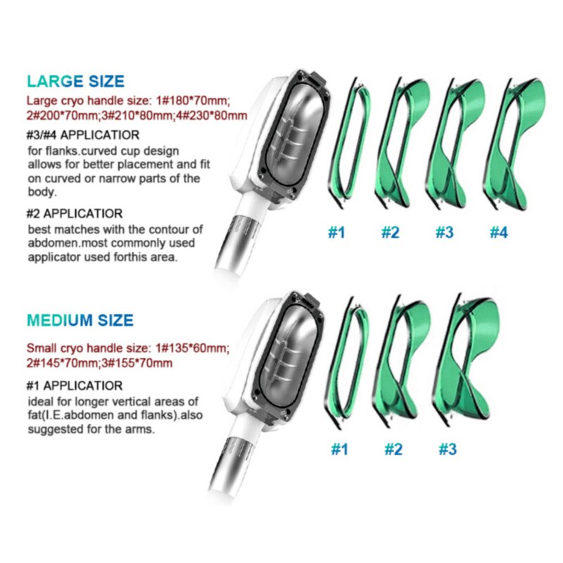 - Manipul mare Criolipoliza 360 ° cu 4 dimensiuni suplimentare de accesorii interschimbabile