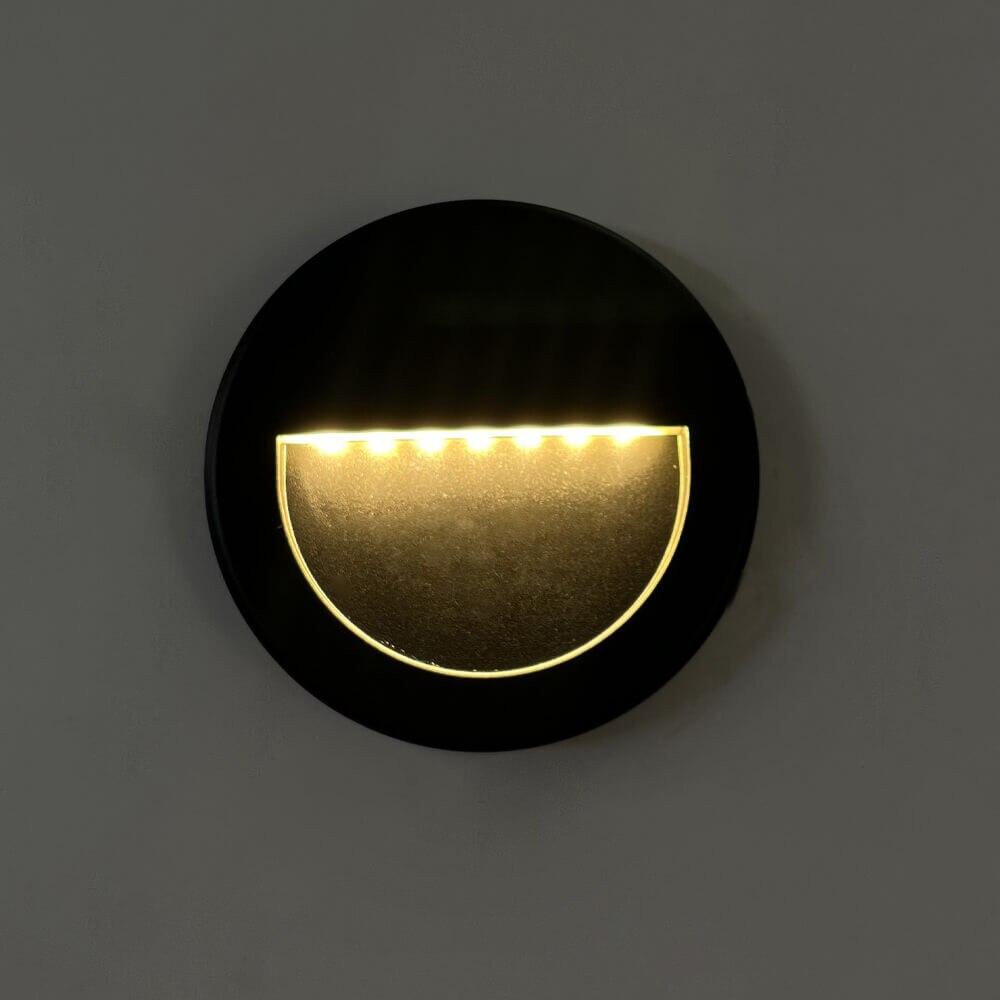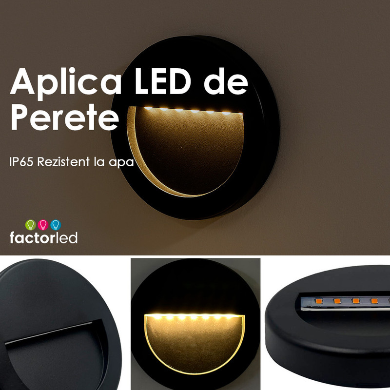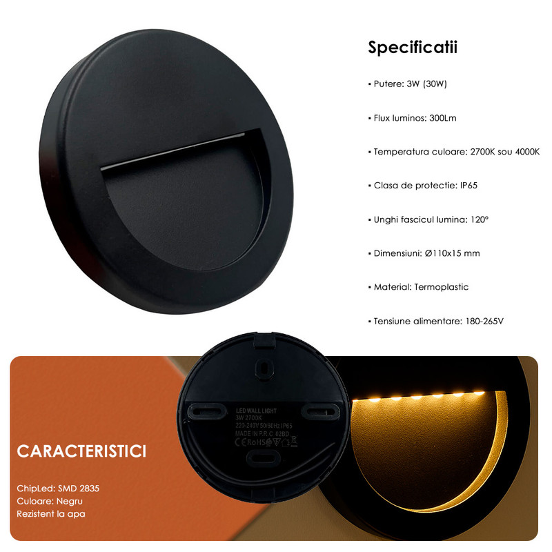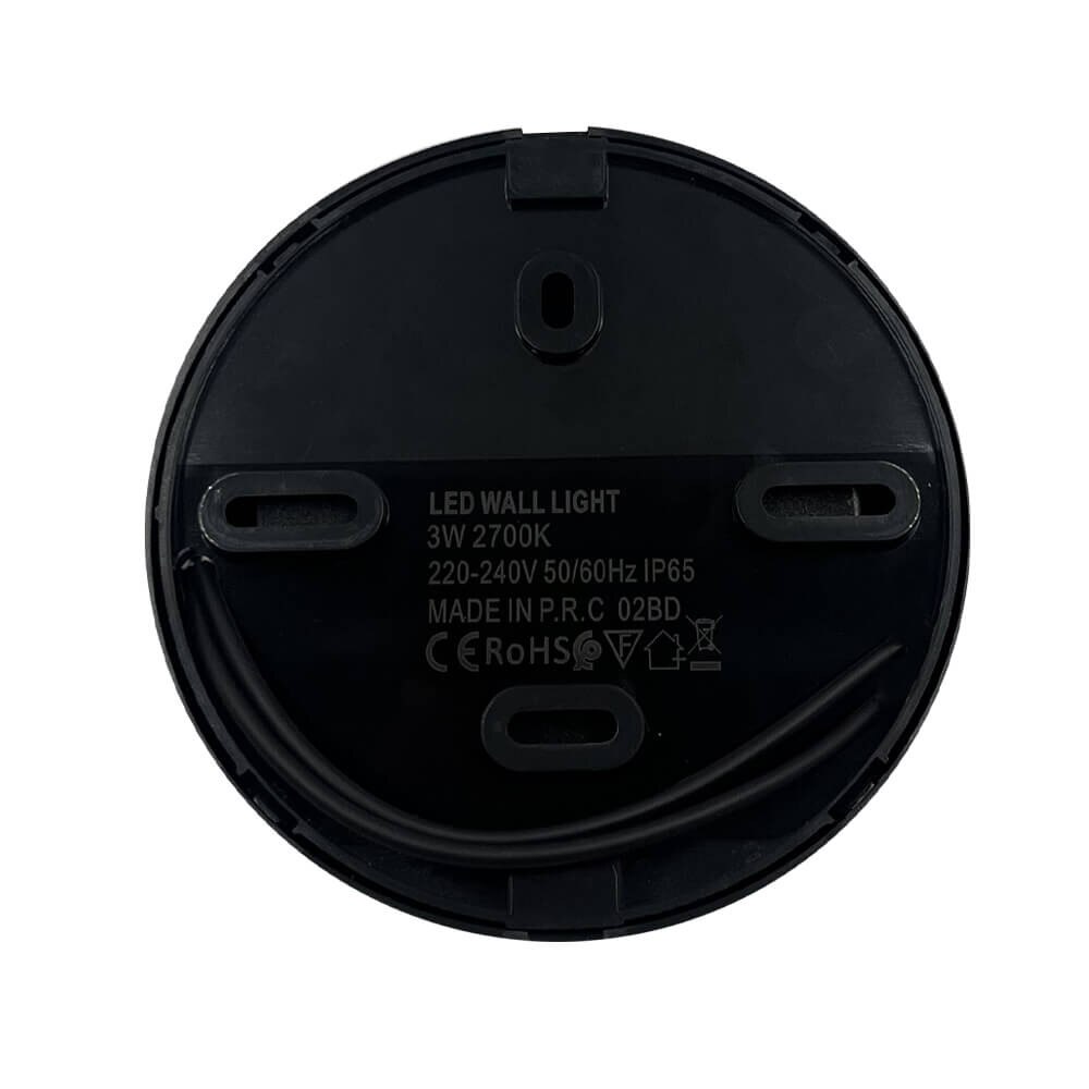 Aplica LED de Perete, Circulara, Exterior, 3W (30W), Negru, IP65 Rezistent la apa, Lumina calda 2700K, pentru fatade, scari sau zone de trecere