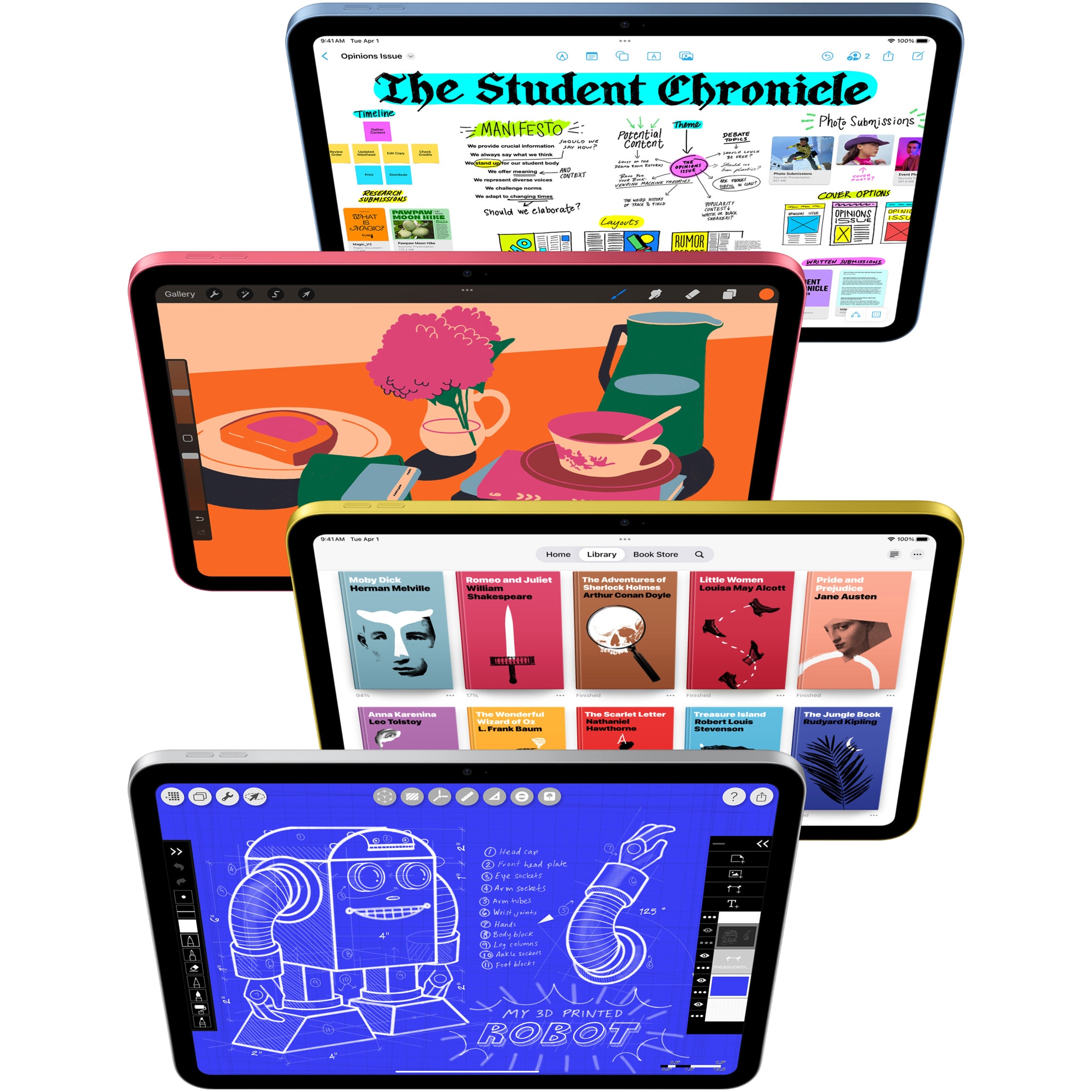 iPad vine echipat cu aplicatii puternice si capabile precum Poze, Harti, Mesaje, Mail si Safari. In plus, cu peste un milion de aplicatii in App Store concepute special pentru iPad, o vei gasi cu siguranta pe cea de care ai nevoie. Pentru orice ai vrea sa faci. Gestioneaza un proiect cu Trello, colaboreaza pe panza infinita a Freeform sau finalizeaza-ti lucrarea cu Microsoft Word.