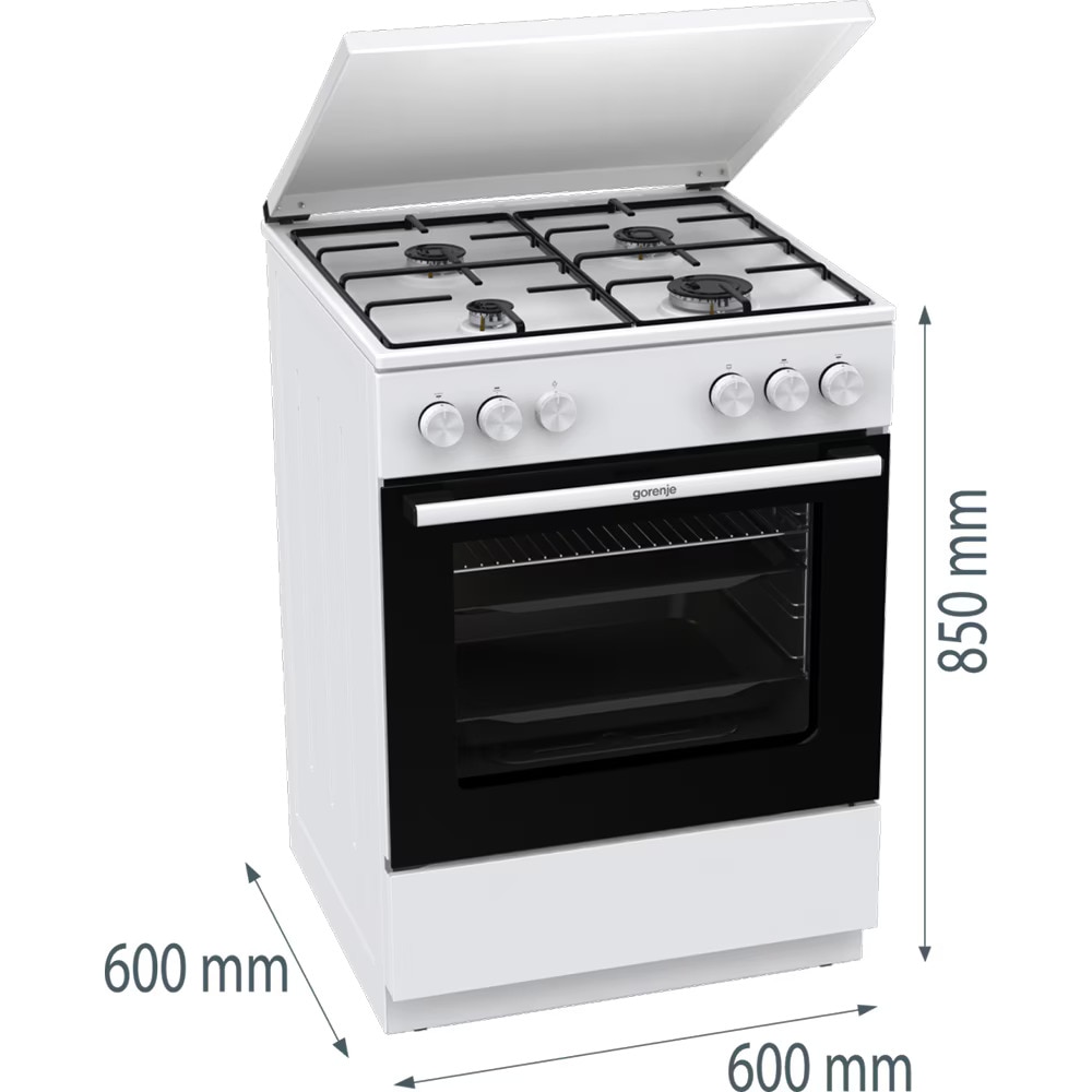 Aragaz GORENJE GG6A11WJ, 4 arzatoare, Gaz, L 60 cm, Alb