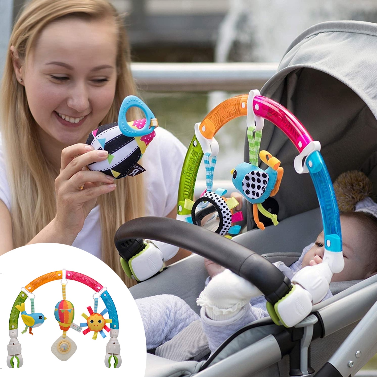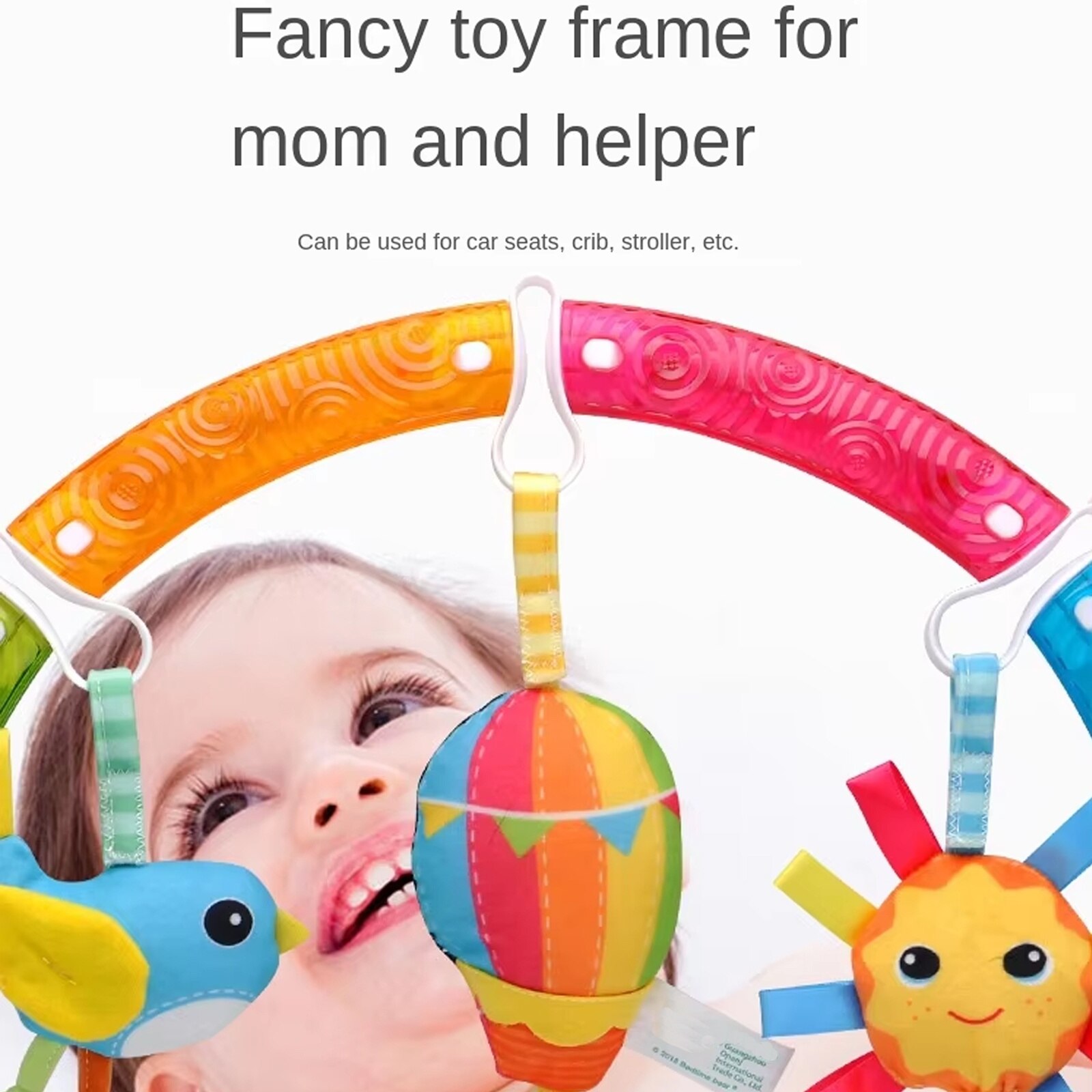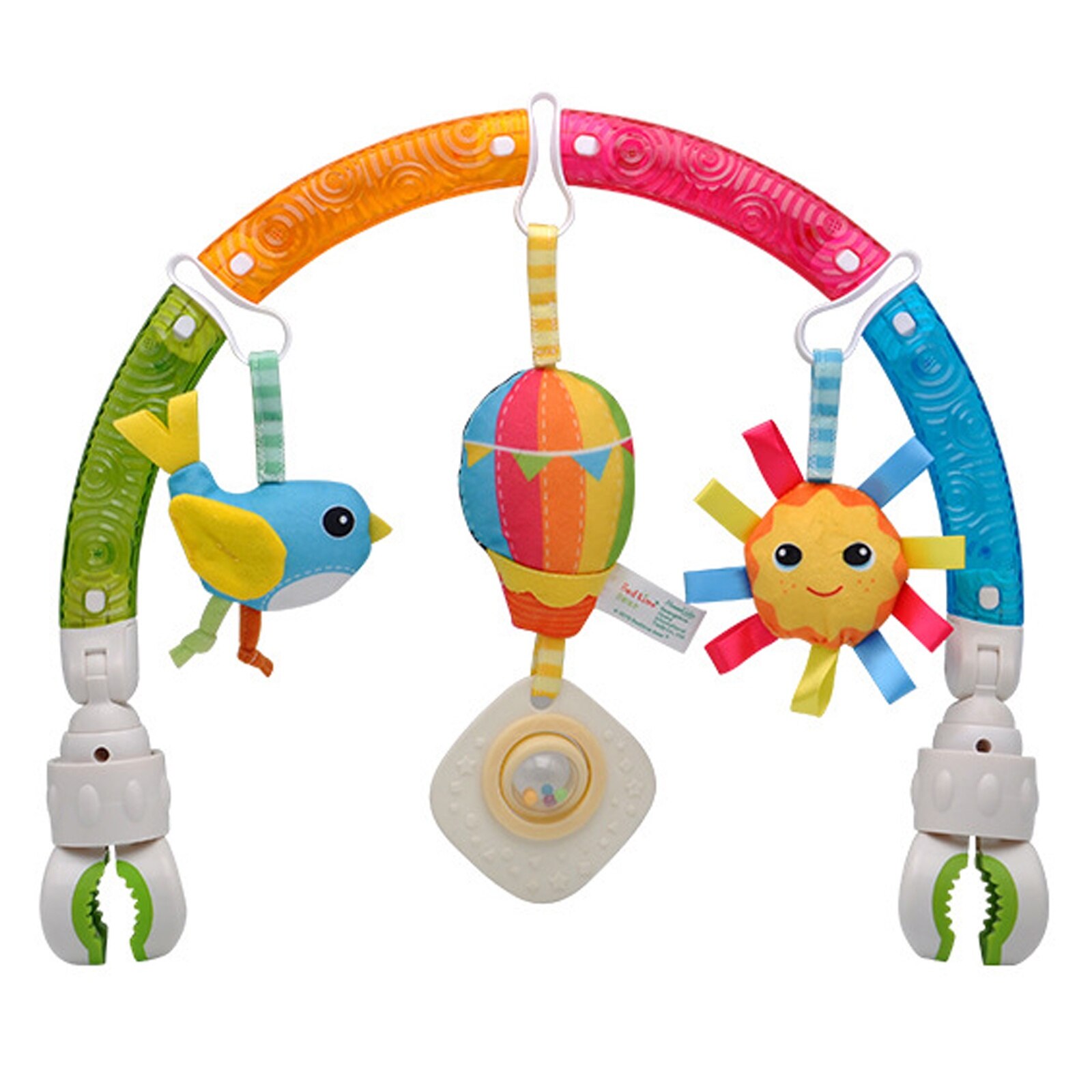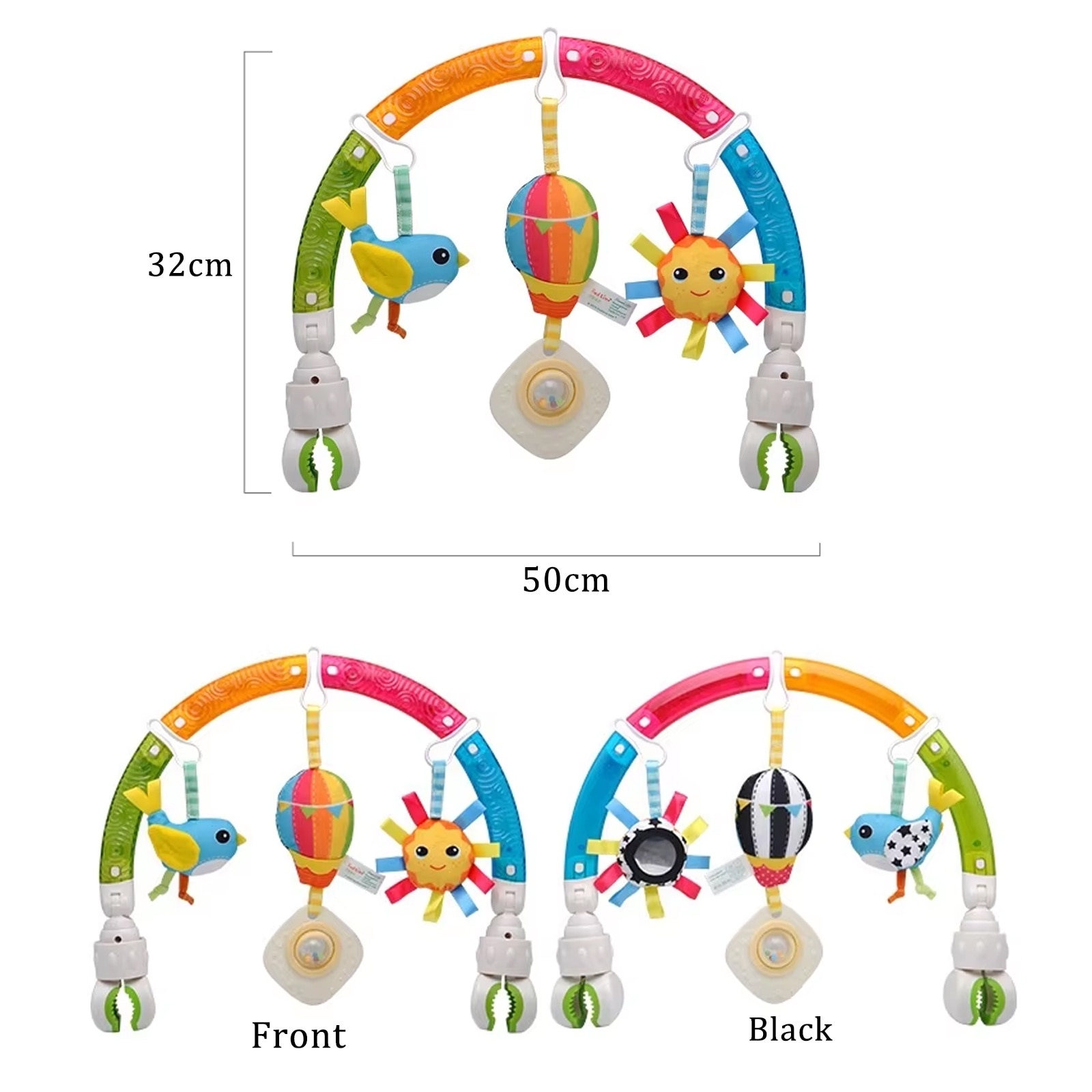 Arcada Jucarie Pentru Carucior, Axroad Mall, Clopotei de pat pentru copii, Agrafa de pat, 0-36 luni, Curcubeu pastel, Pentru explorarea senzoriala, Pentru Scaun Auto, Plastic/Textil, 50 x 32cm, Multicolor
