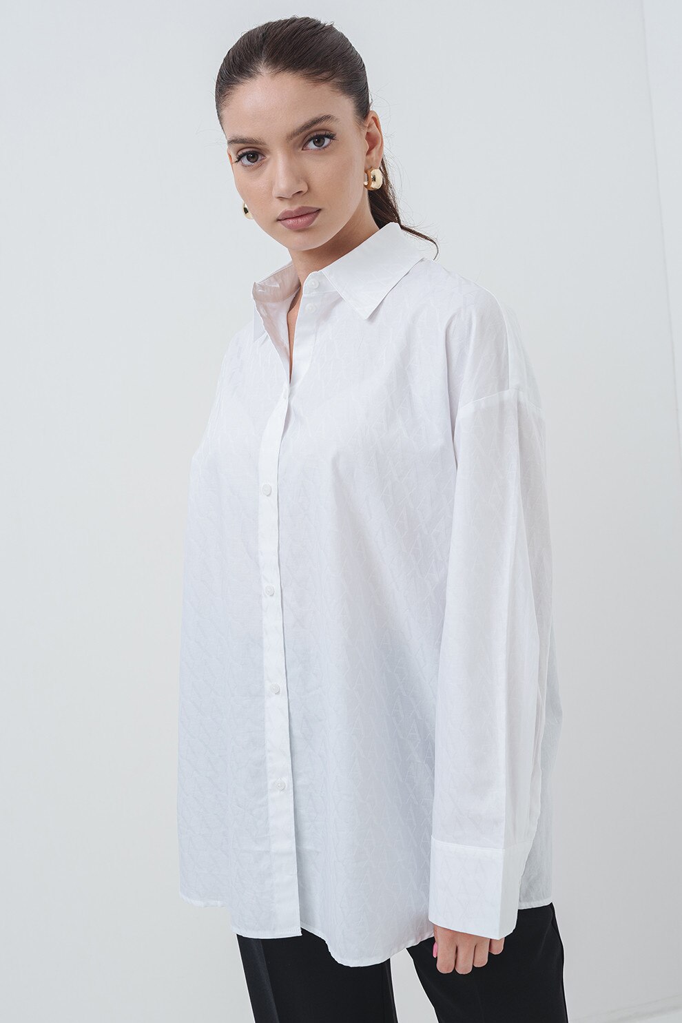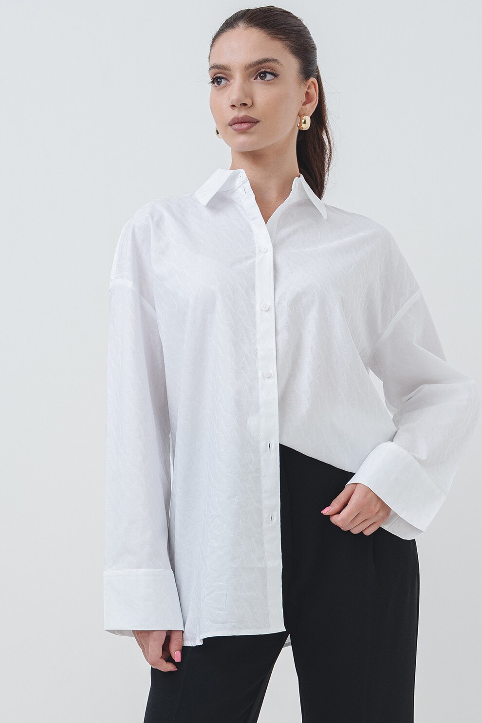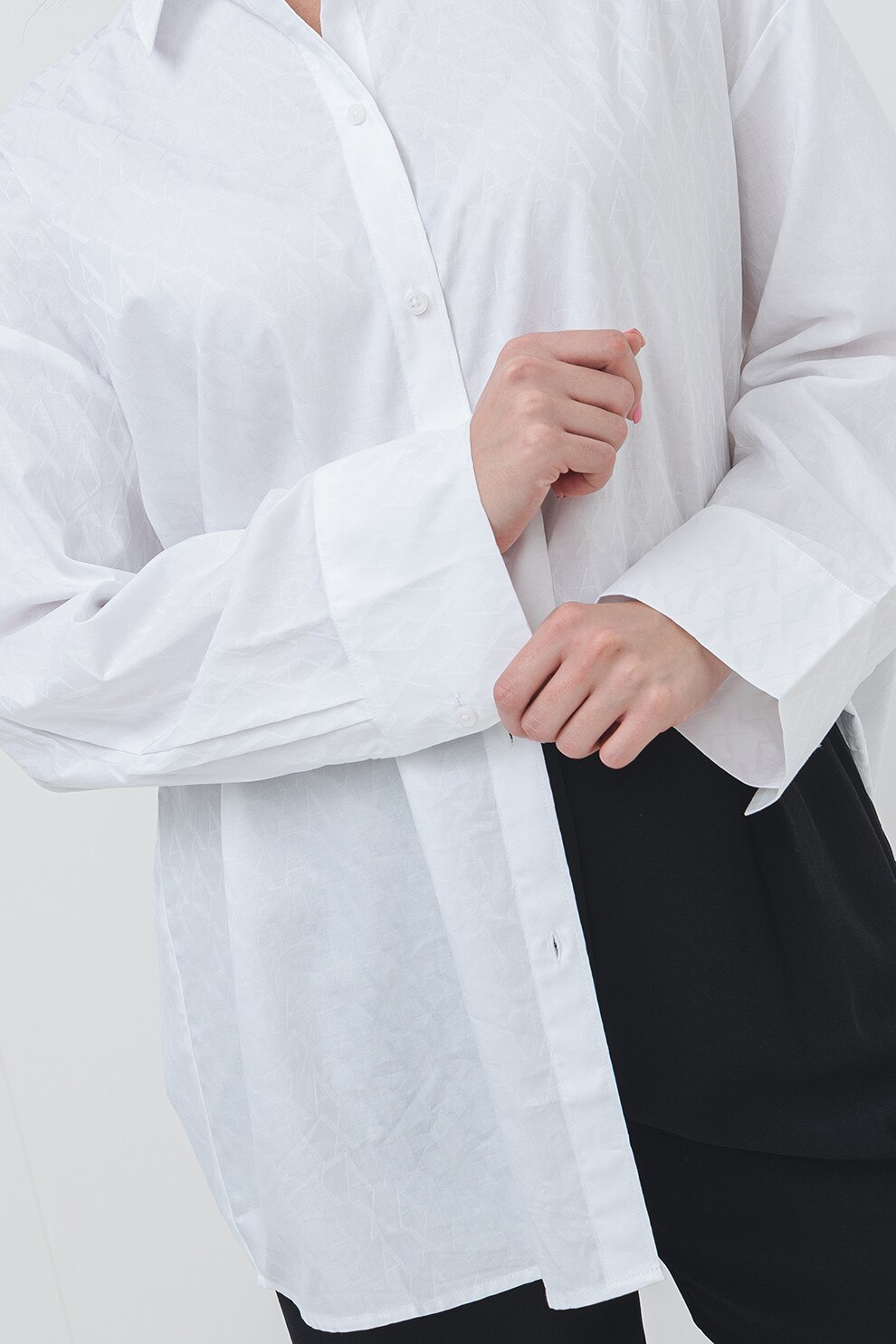 ARMANI EXCHANGE - Camasa supradimensionata din bumbac cu guler ascutit, Alb