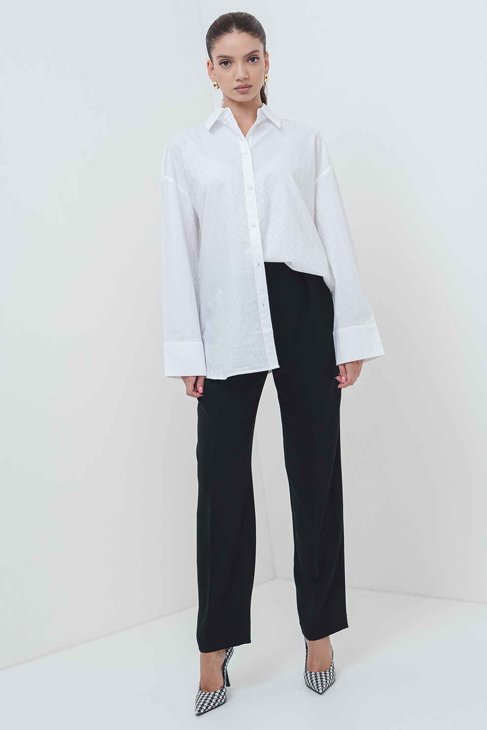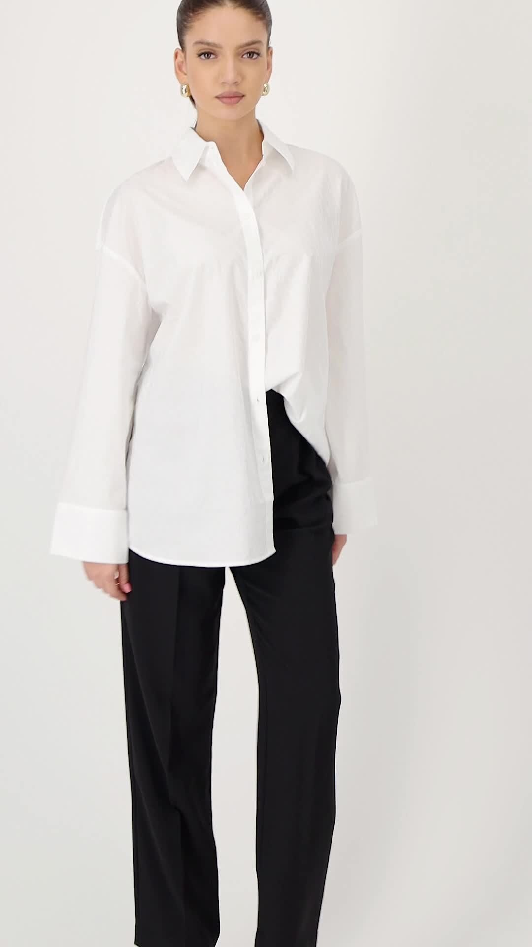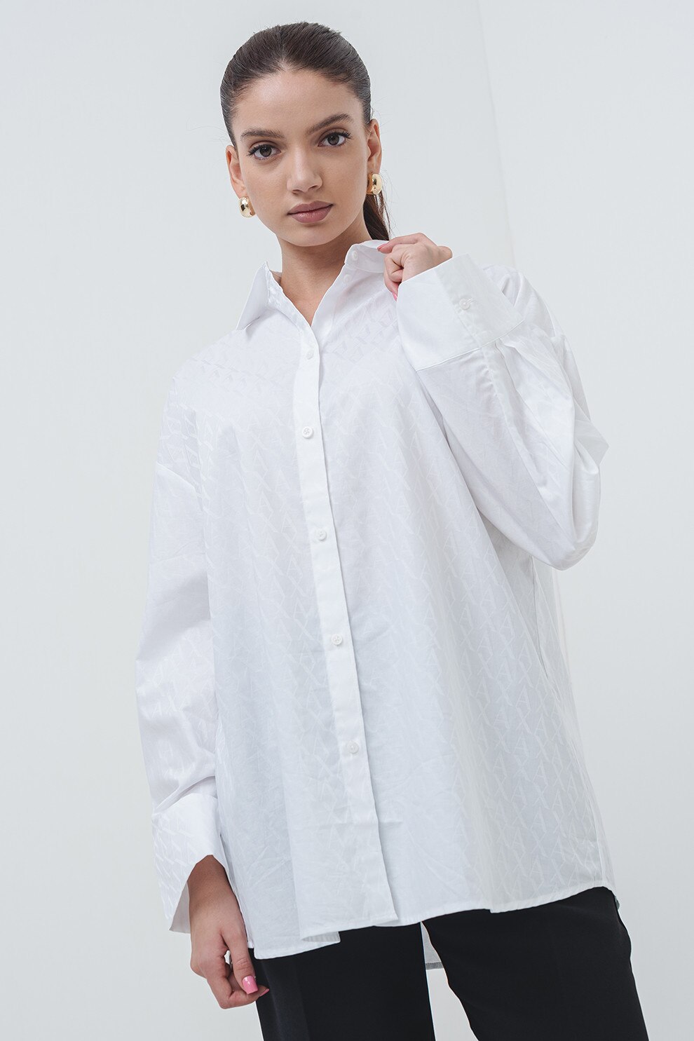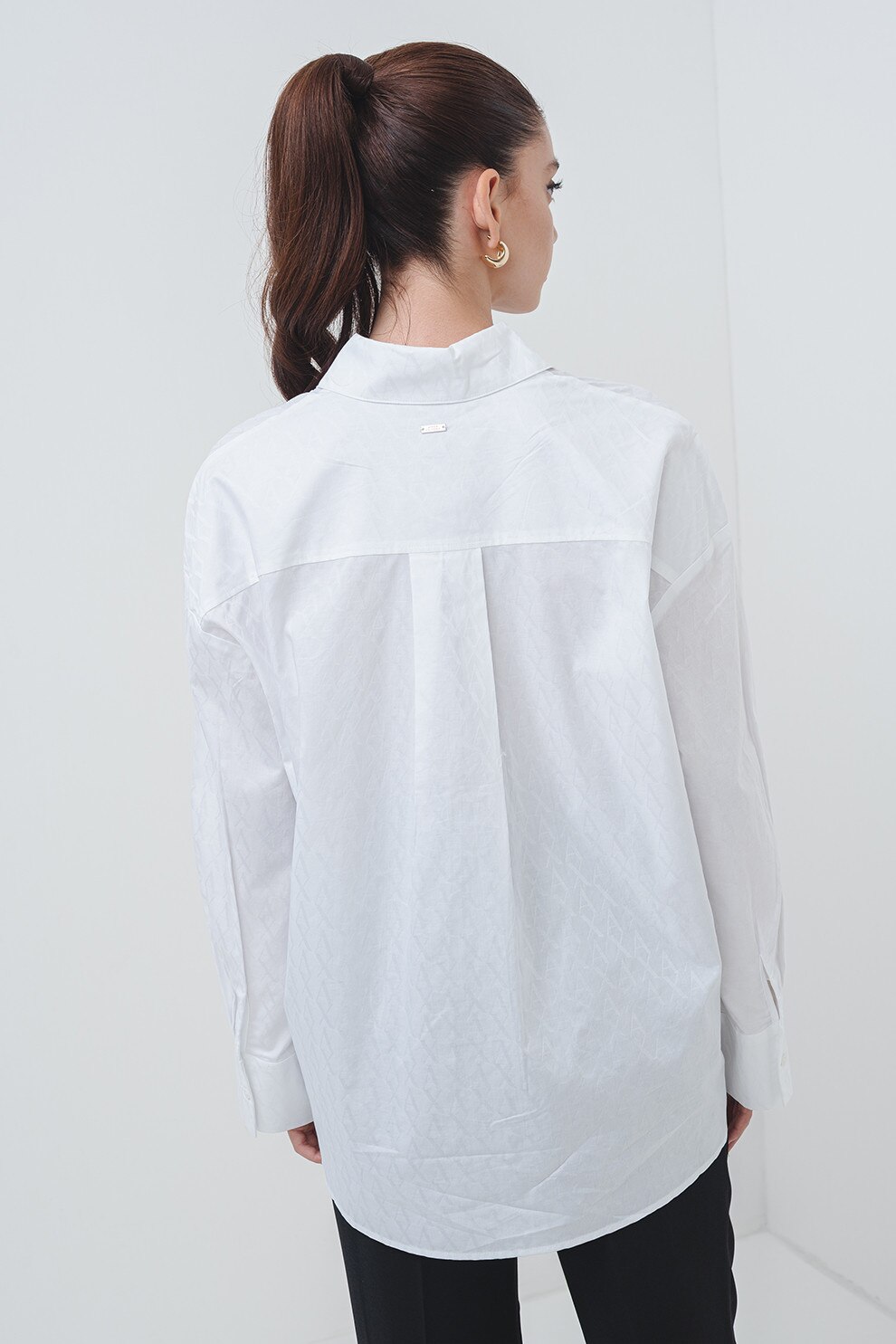 ARMANI EXCHANGE - Camasa supradimensionata din bumbac cu guler ascutit, Alb