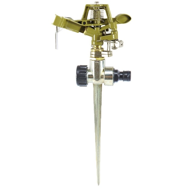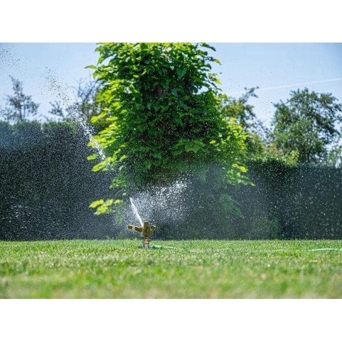 Aspersor Metalic Profesional MX251, 6 Moduri de Dispersie prin Bataie, Udare Uniforma si Reglabila pentru Gazon, Gradina si Culturi