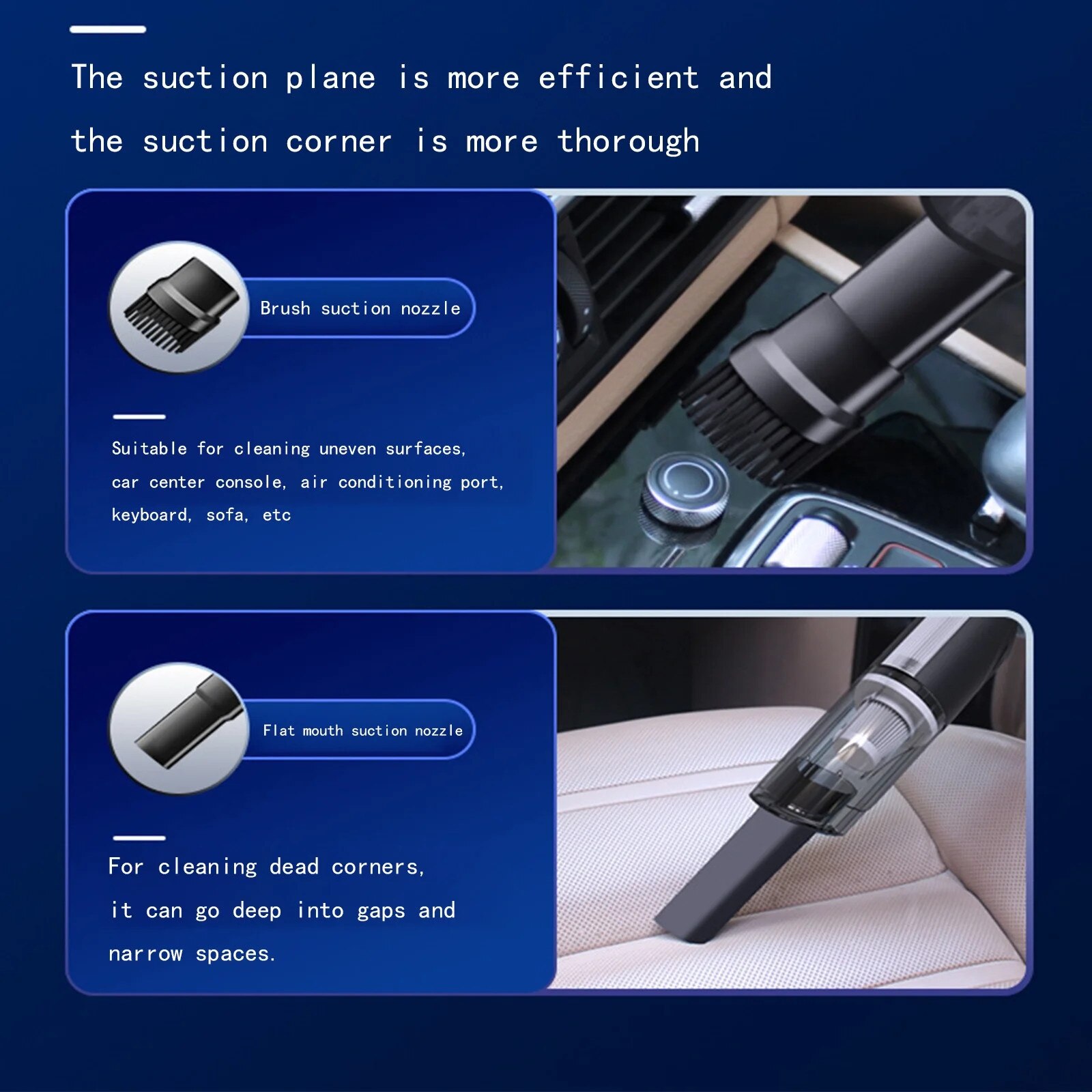 Ușor de utilizat: Designul aspiratorului portabil are un singur buton pentru o operare simplă. Cu peria suplimentară oferită, curățarea aspiratorului auto este mai ușoară.