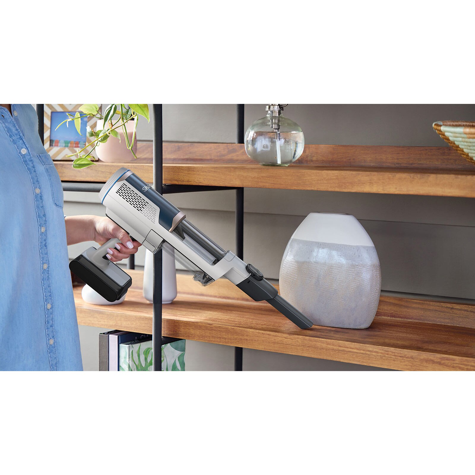 Aspirator fără fir Shark Clean & Empty cu sistem automat de golire, timp de funcționare 40 min, Anti Hair Wrap, accesorii pentru păr de animale și spații înguste, stație de încărcare, alb/albastru, BU3521EU