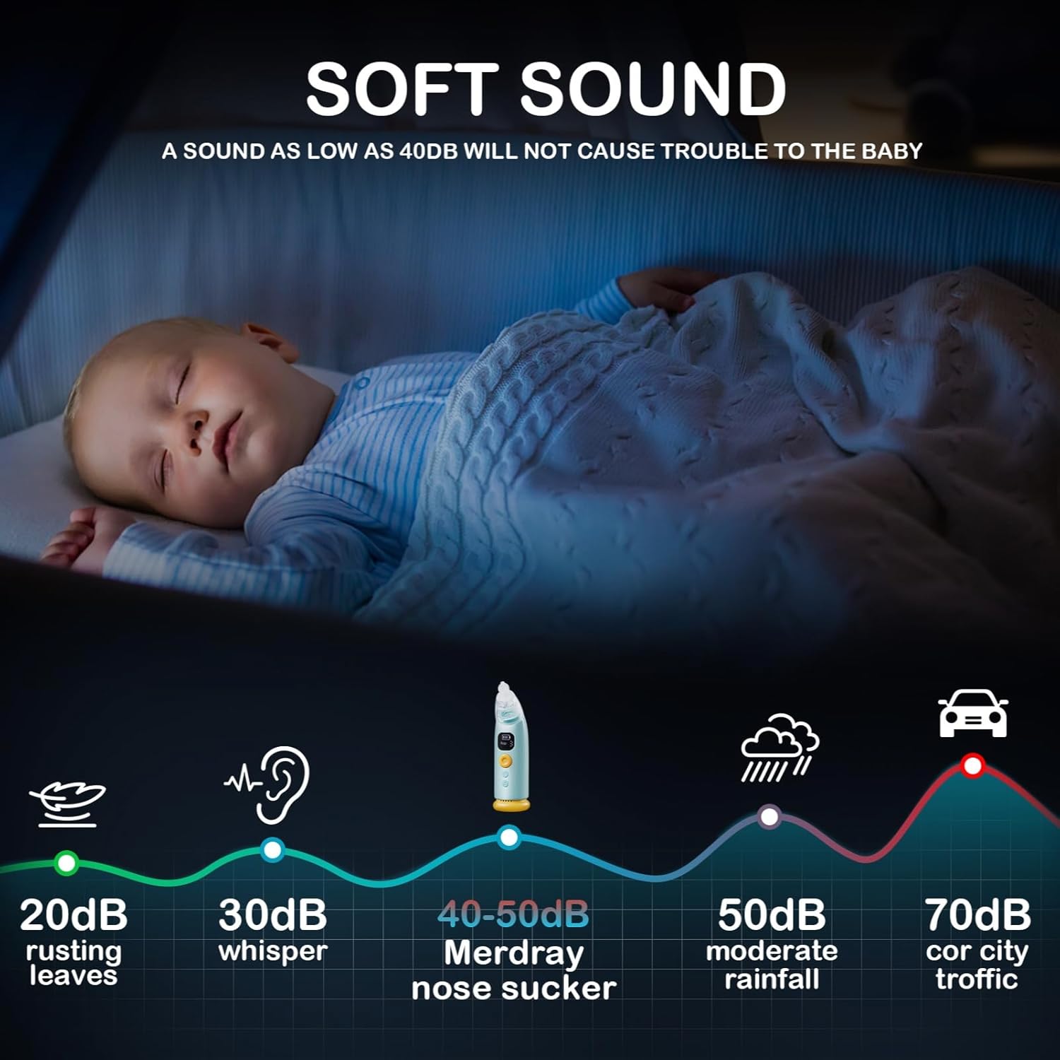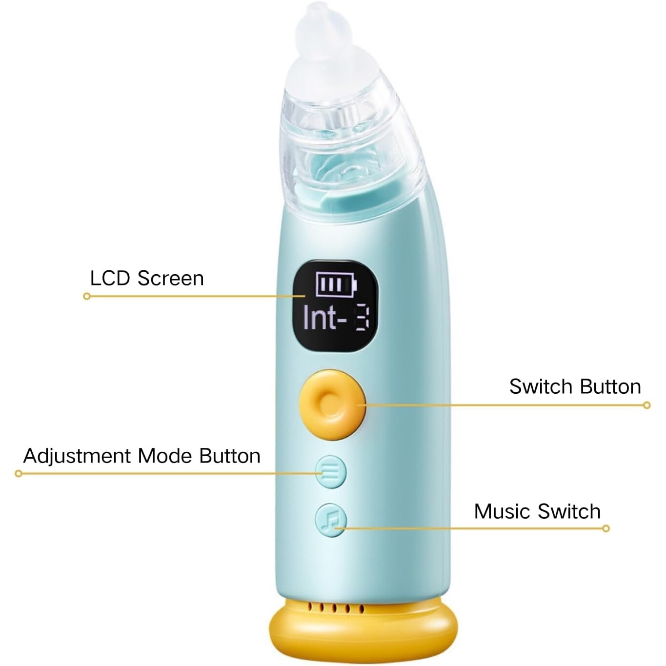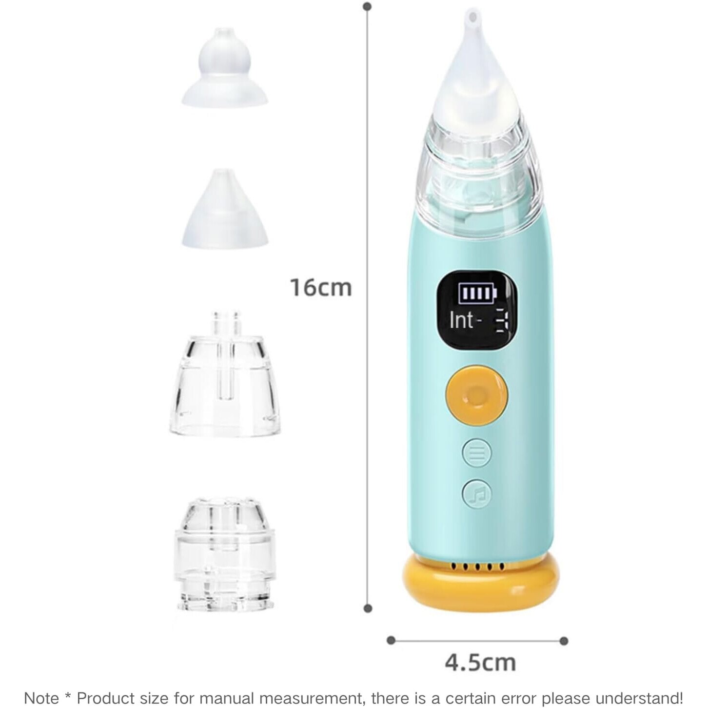 Aspirator nazal electric, cu 3 capete din silicon, muzica linistitoare, albastru, 16x4.5x4cm, set complet