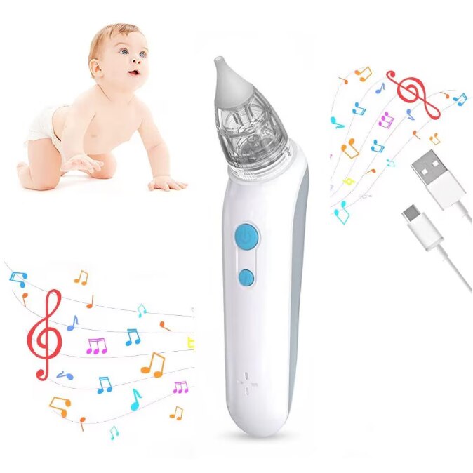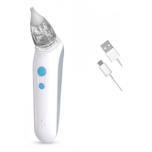 Aspirator nazal electric pentru bebelusi si copii, Portabil, 2 trepte de aspirare, 2 capete de silicon, Incarcare USB, Alb