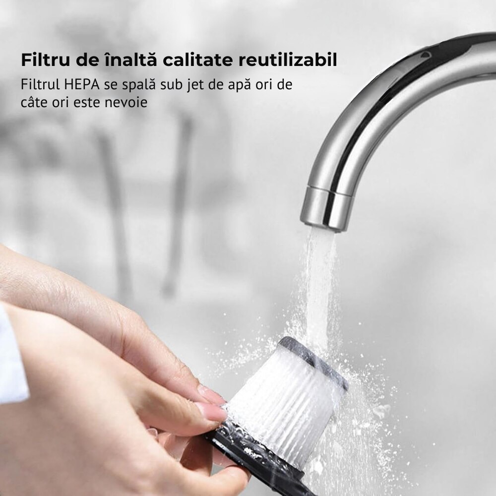 Filtru HEPA reutilizabil: Asigura o filtrare excelenta si poate fi curatat cu usurinta.