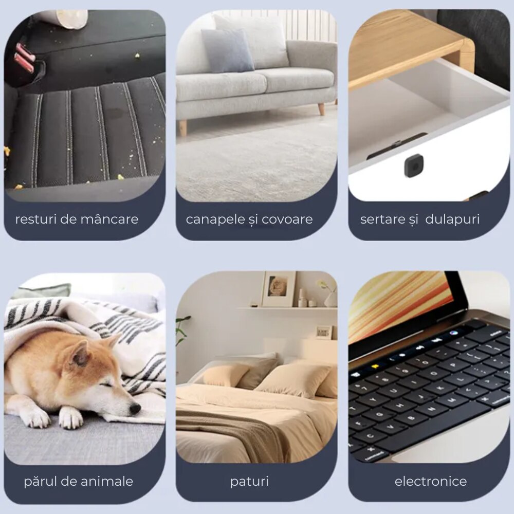 Curatarea rapida a suprafetelor din masina, canapele, birouri sau tastaturi.