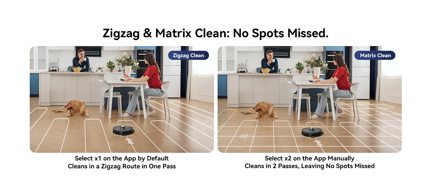 Robot de aspirare Q8 Max Curatare in zig-zag si matrice: Nu este lasat niciun punct.