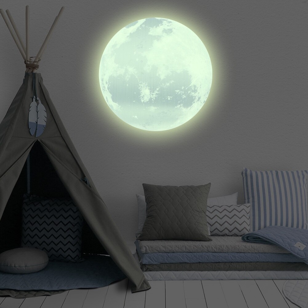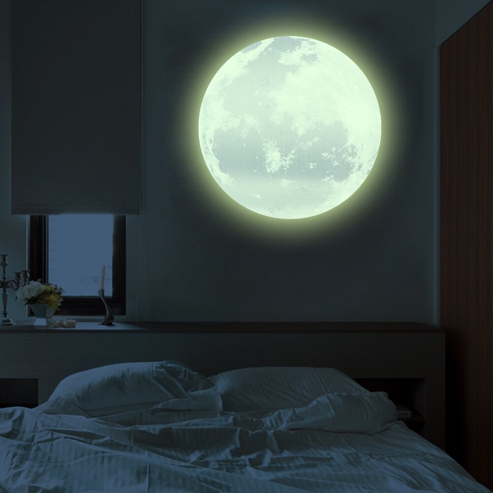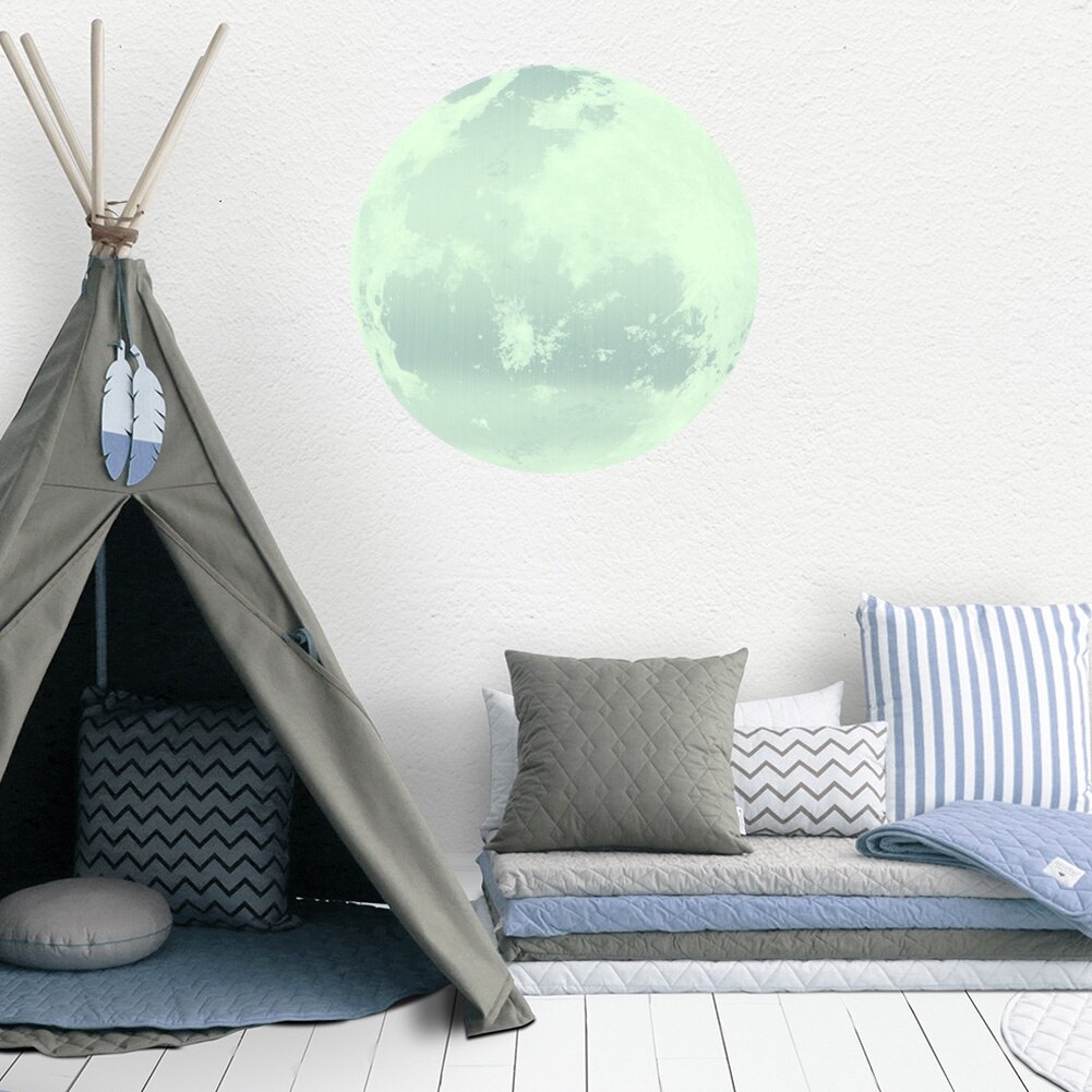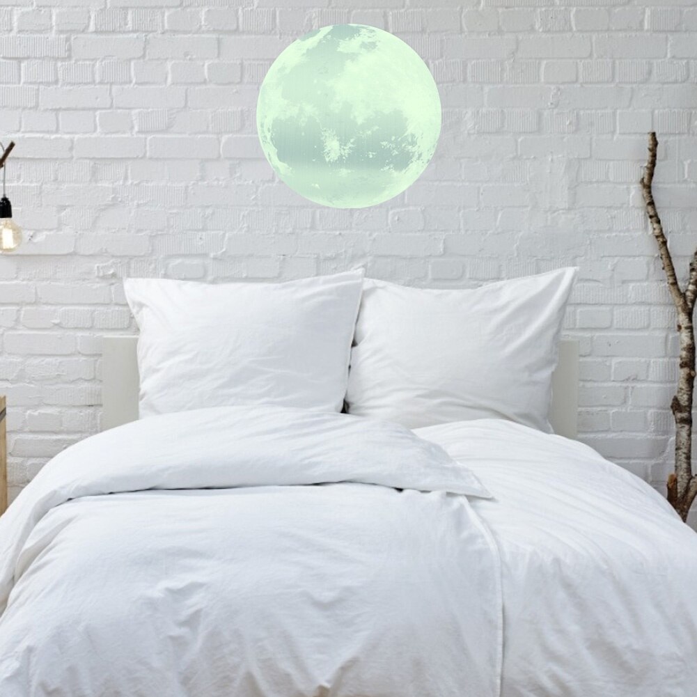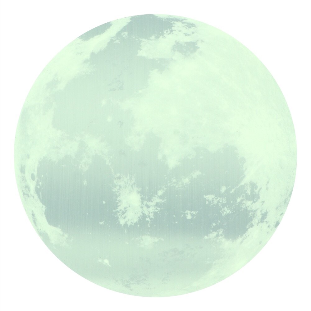 Autocolant de perete luminos, Mmgoqqt, forma de luna, argintiu-verde, 30cm