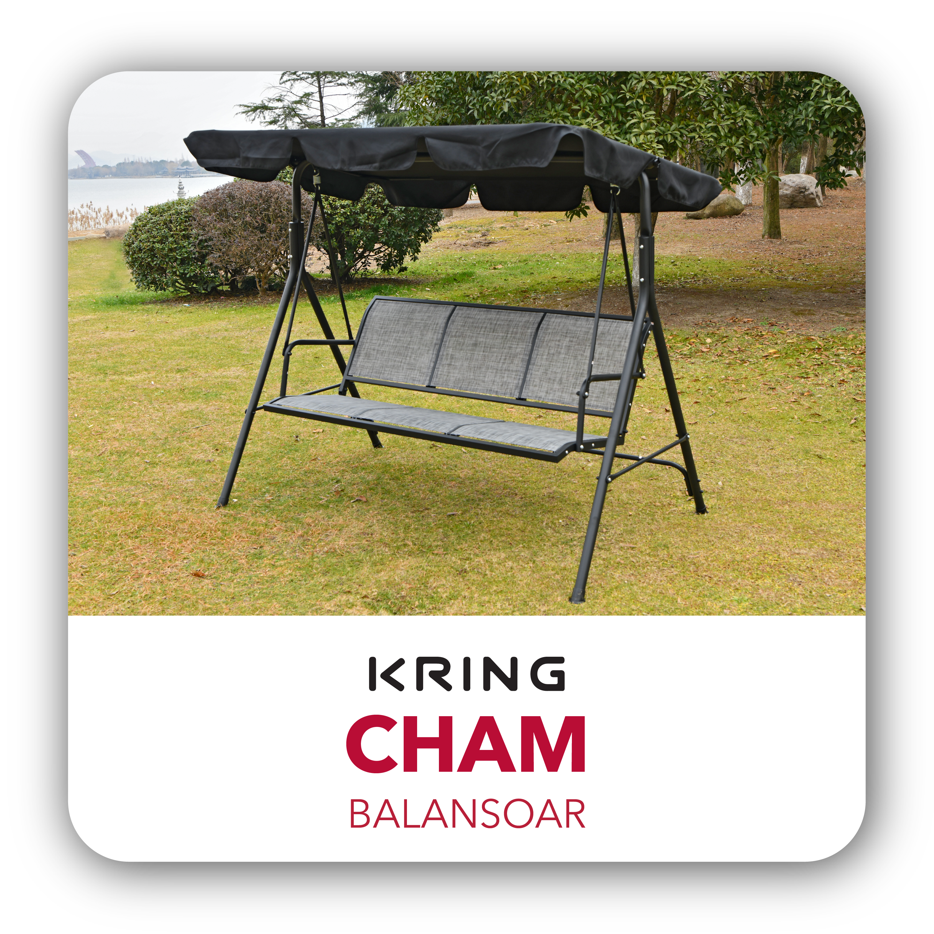 Balansoar Kring Cham, 3 locuri, dimensiuni 108x190x155 cm