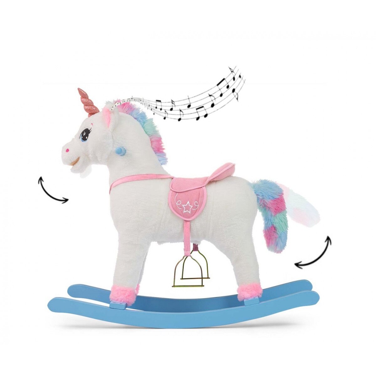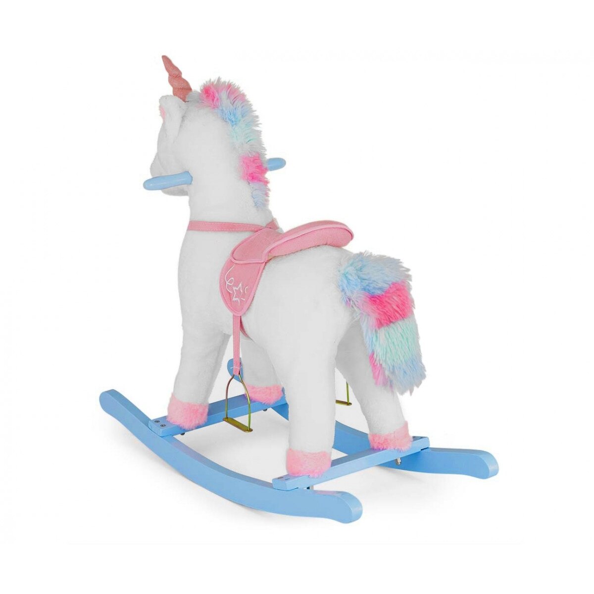 Balansoar pentru copii, Milly Mally, Model unicorn, Lemn, 18m+, Sarcina maxima 30 kg, 28 x 74 x 61 cm, Alb/Roz