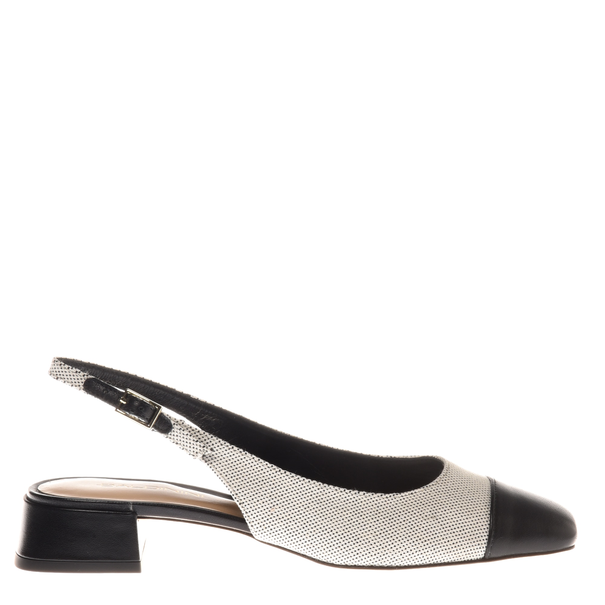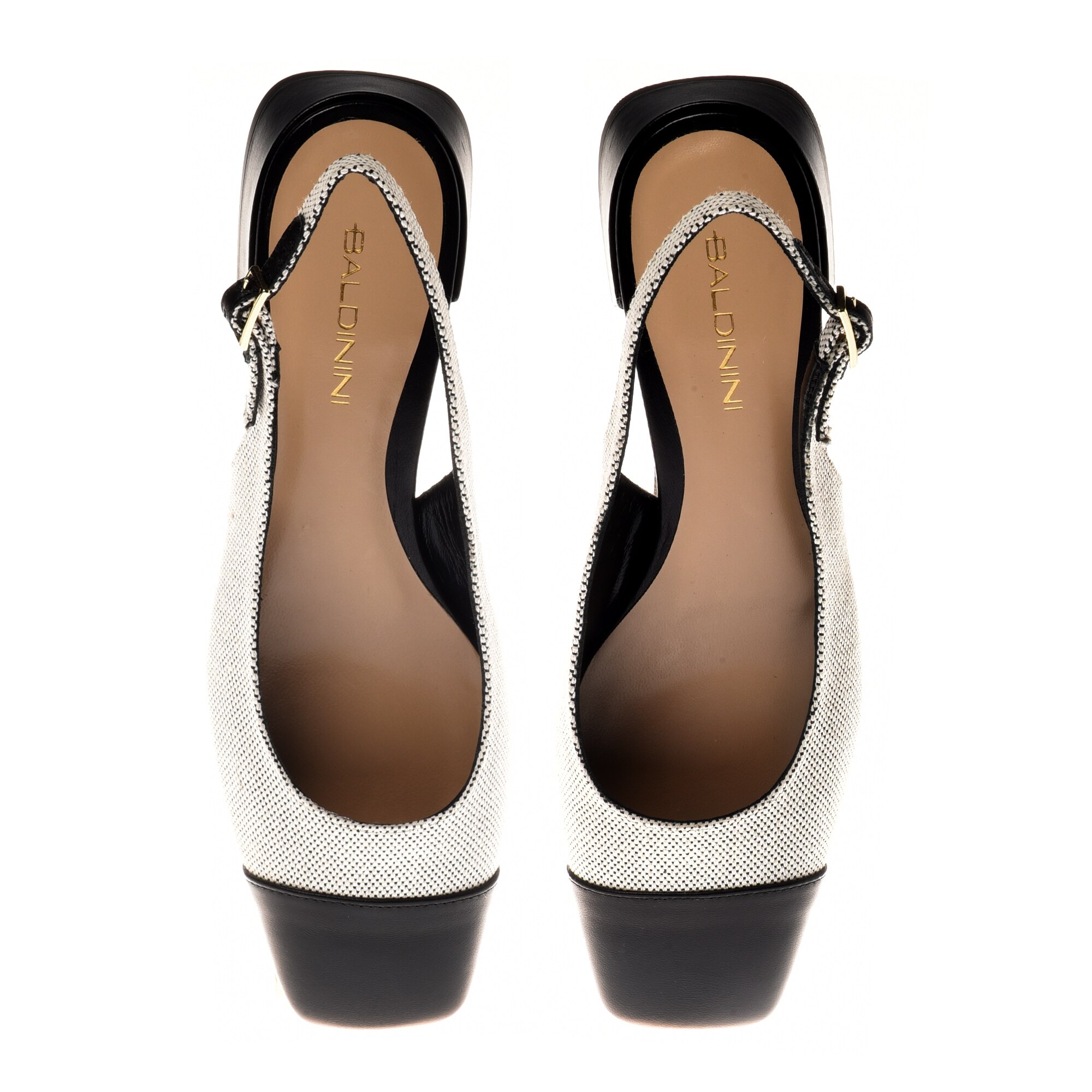 Baldinini - Pantofi slingback cu insertii de piele, Alb/Negru