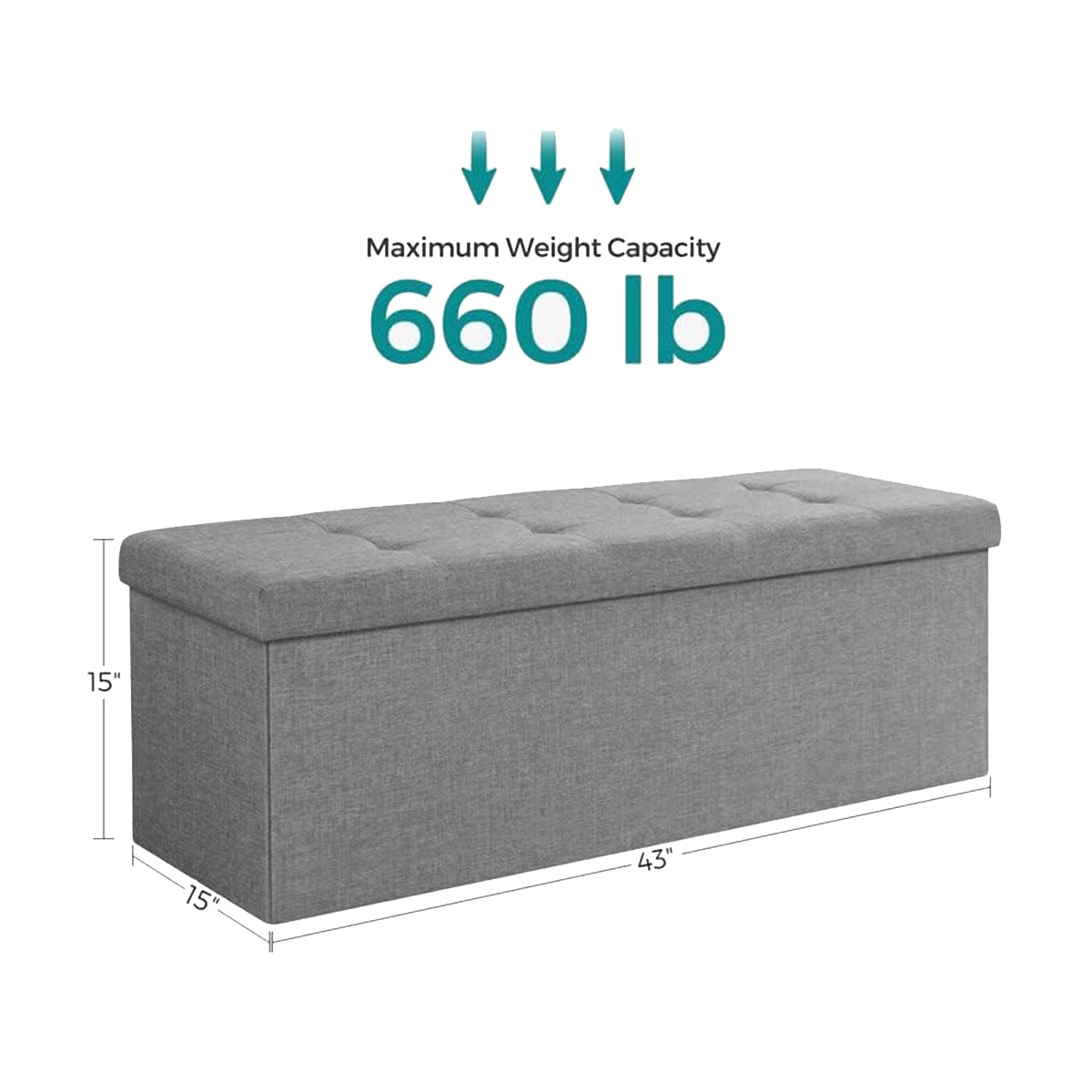 Banca cu spatiu depozitare 120 L, Tapitata, Gri deschis
