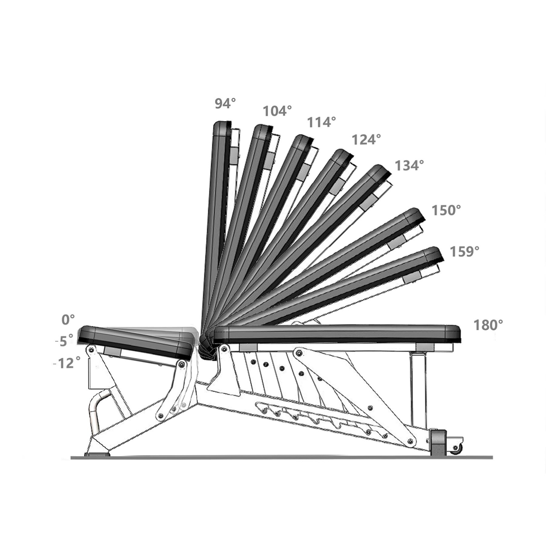 Banca L1237 oferă 3 niveluri de reglare a scaunului și 8 nivele de reglare a spătarului, permițându-vă să ajustați poziția la o varietate de exerciții. Gama de reglare a spătarului este de la 94 la 180 de grade, ceea ce vă permite să efectuați exerciții atât în poziție verticală, orizontală și oblică. Acest lucru permite utilizatorului să antreneze eficient diverse grupe de mușchi, de la piept până la spate și brațe, păstrând în același timp confortul deplin.