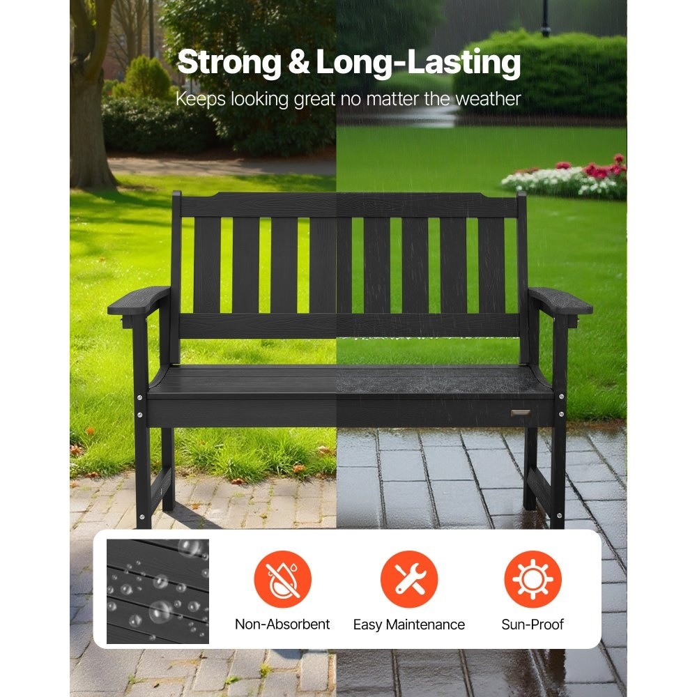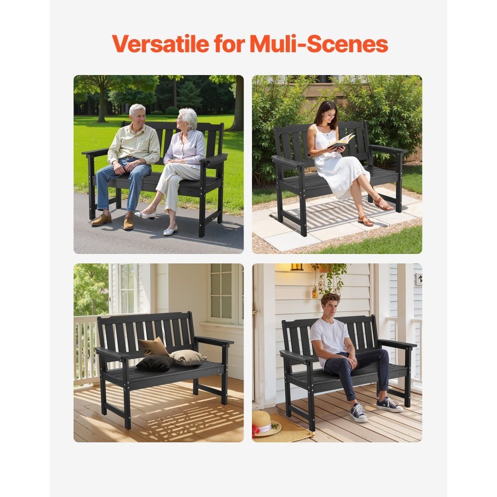 Banca de Exterior, Banca de Terasa 128 cm, Cadru din Plastic Rezistent la Intemperii, Capacitate 363 kg, Culoare Negru